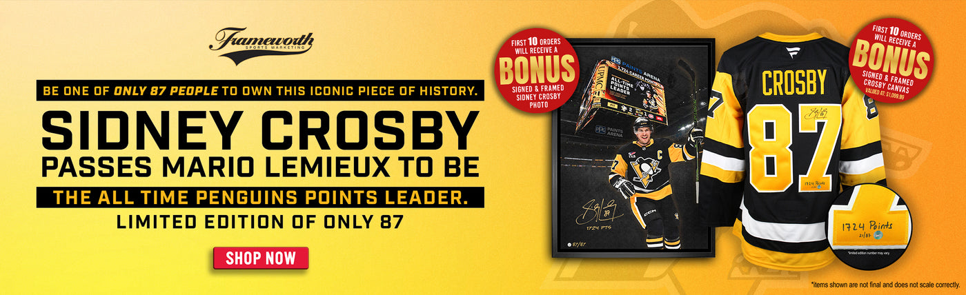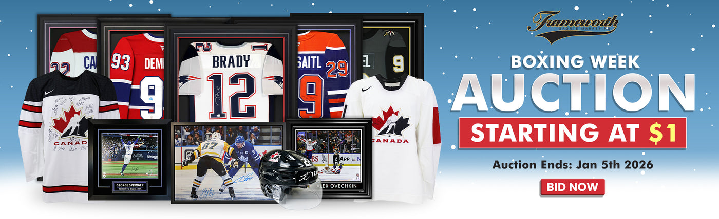 Frameworth Sports Canada is proud to offer officially licensed sports memorabilia from exclusive athletes like Sidney Crosby, Carey Price, John Tavares, Mitch Marner, Morgan Rielly, Alek Manoah, Kevin Gausman, Jordan Romano, and so many more. Shop autographed jerseys, game-used and ready-to-hang products, or check out our custom framing options. Whether you’re looking to support your favourite player, and/or favourite NHL, MLB, NLL team, we have you covered. Browse our sports collectibles or check out our music collections featuring The Tragically Hip and Rush. Frameworth Sports is your trusted source for all your fan cave needs