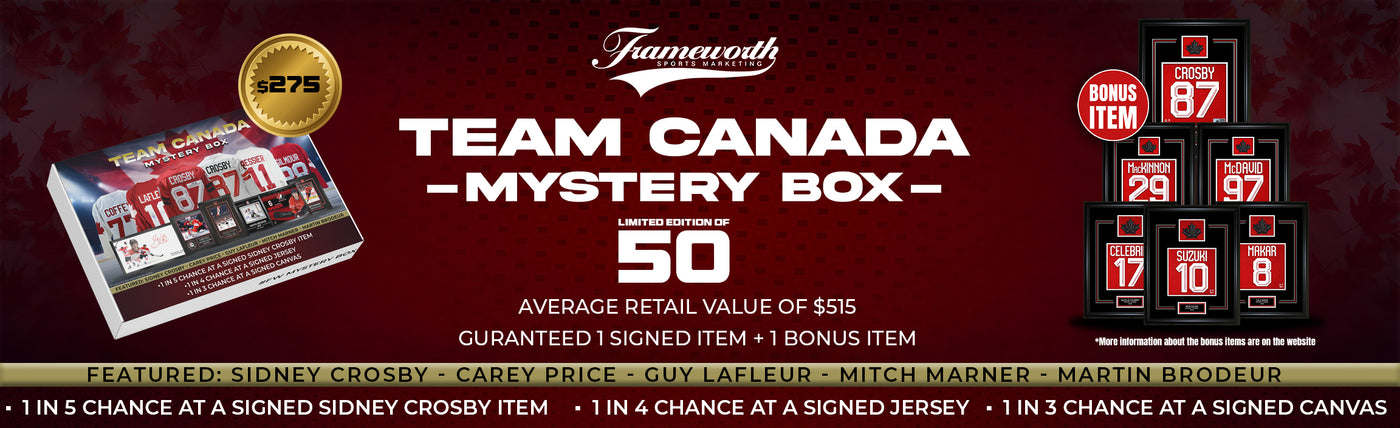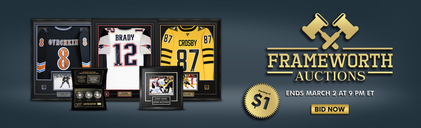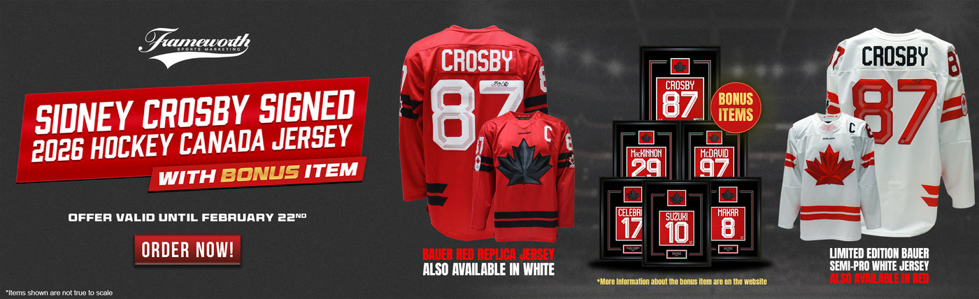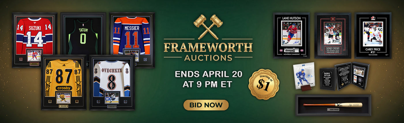 Frameworth Sports Canada is proud to offer officially licensed sports memorabilia from exclusive athletes like Sidney Crosby, Carey Price, John Tavares, Mitch Marner, Morgan Rielly, Alek Manoah, Kevin Gausman, Jordan Romano, and so many more. Shop autographed jerseys, game-used and ready-to-hang products, or check out our custom framing options. Whether you’re looking to support your favourite player, and/or favourite NHL, MLB, NLL team, we have you covered. Browse our sports collectibles or check out our music collections featuring The Tragically Hip and Rush. Frameworth Sports is your trusted source for all your fan cave needs