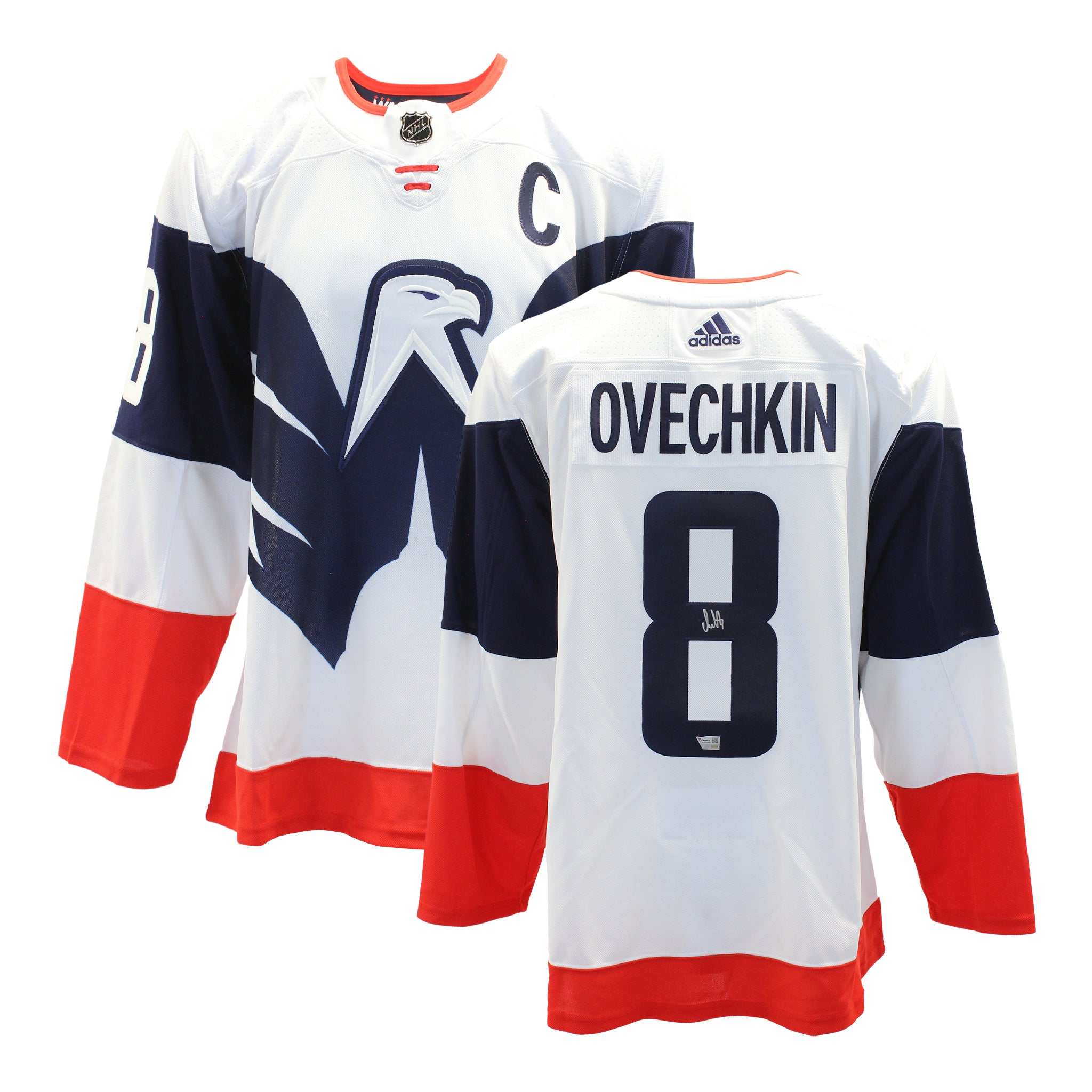 This Alexander Ovechkin Washington Capitals jersey with name and numbers professionally sewn on comes personally autographed by Alexander Ovechkin. This jersey is officially licensed by the National Hockey League (NHL) and National Hockey League Players Association (NHLPA) and comes with a certificate of authenticity and hologram from Fanatics to ensure authenticity. Signatures may vary. Made in Canada.Fanatics Hologram Included