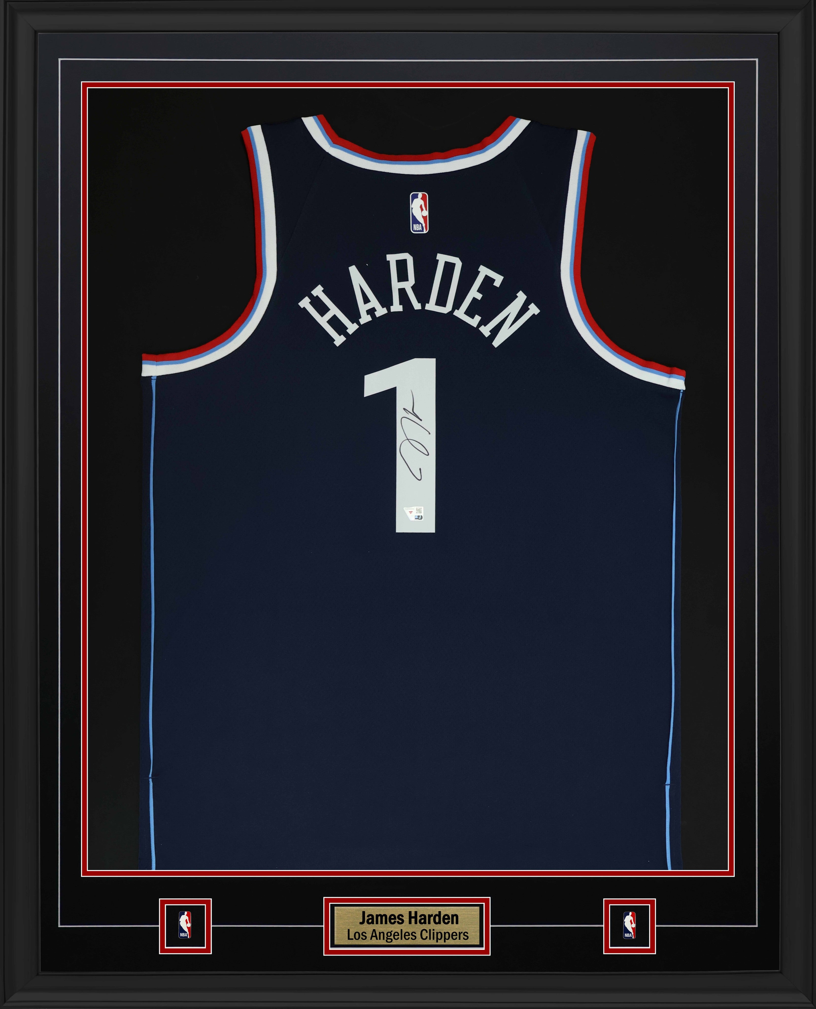 James Harden Signed Jersey Framed 34x42 Los Angeles Clippers Nike Blue Icon Swingman