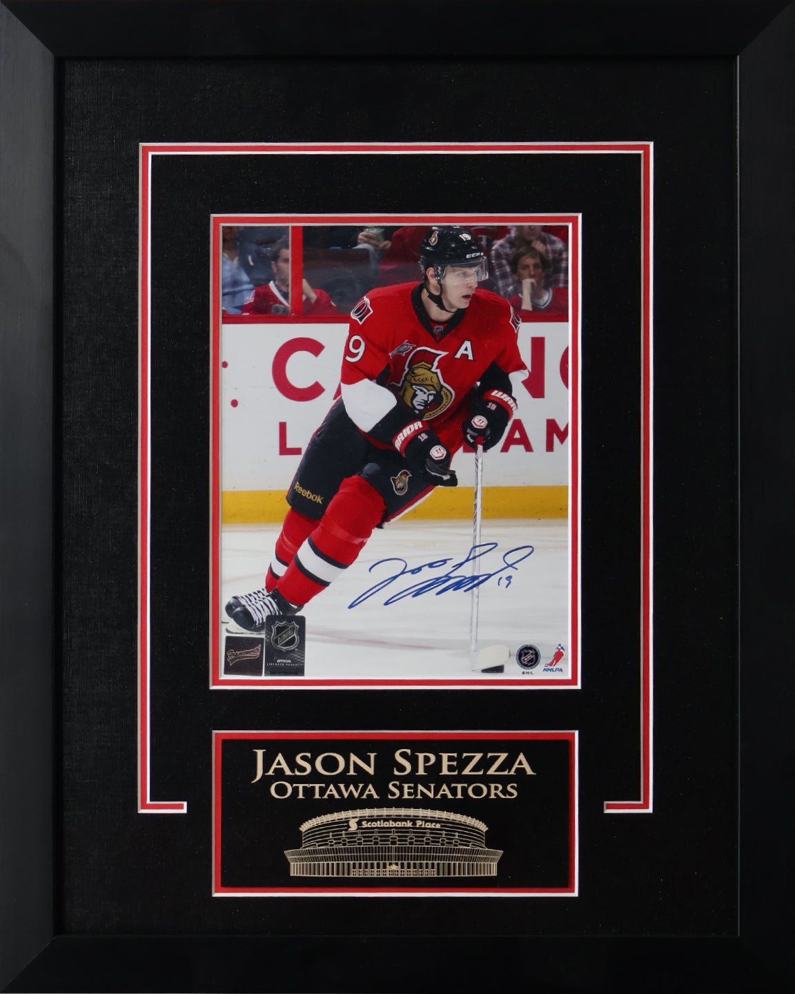 Own a Jason Spezza signed 8x10 action photo from his Ottawa Senators days, professionally framed with arena etching.
