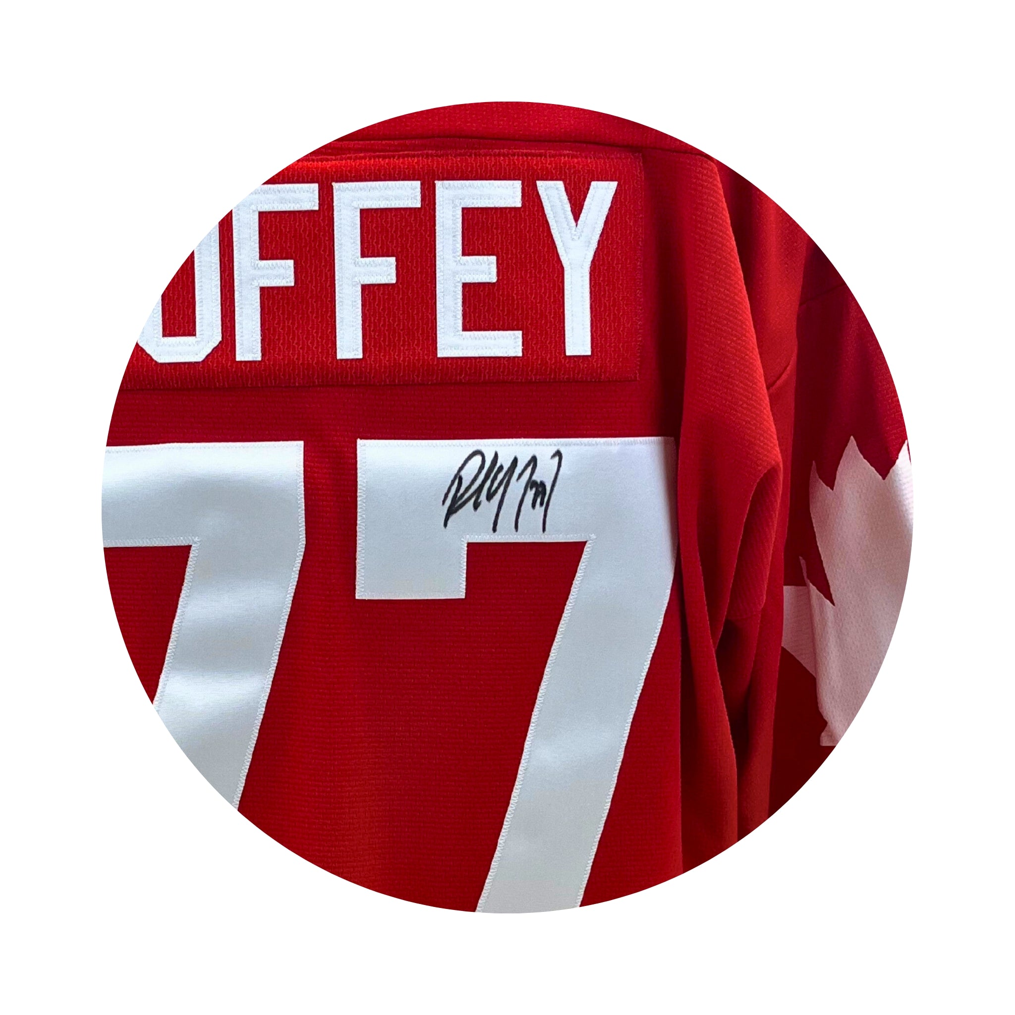This Paul Coffey Team Canada jersey with name and numbers professionally sewn on comes personally autographed by Paul Coffey. This jersey comes with a certificate of authenticity and hologram from Frameworth to ensure authenticity. Signatures may vary.
