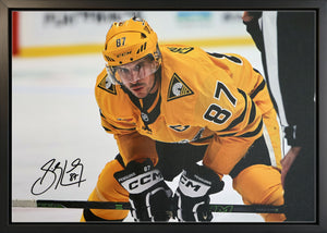 Sidney Crosby and Auston Matthews Dual Signed Framed 20x29 Canvas Faceoff. Finished Size: 31.5x22.5"