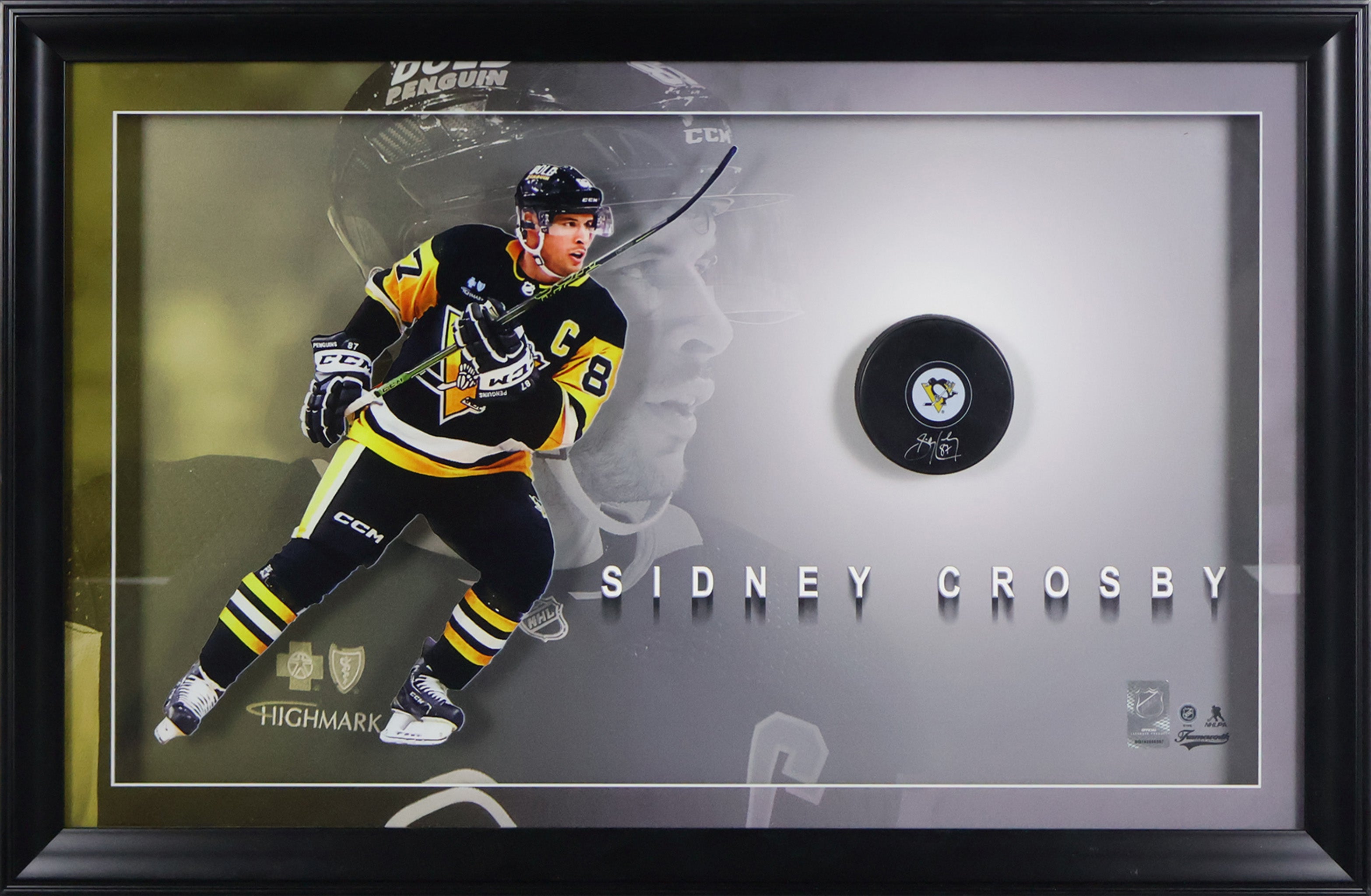 Sidney Crosby Signed Pittsburgh Penguins Framed Photoglass 26x17 Puck