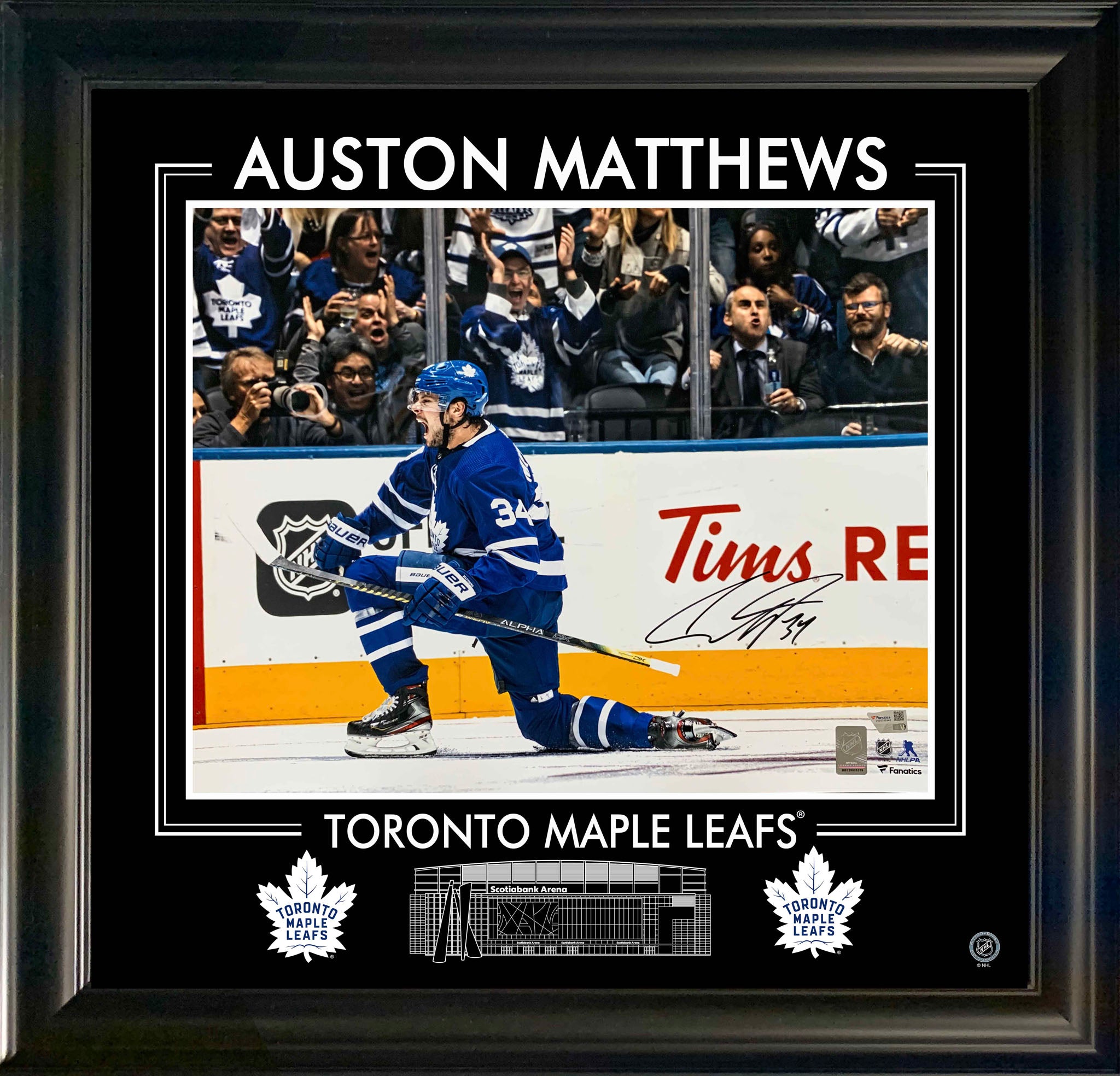 This photo of Auston Matthews comes personally autographed by Auston Matthews before being professionally framed. This photo is officially licensed by the National Hockey League (NHL) and National Hockey League Players Association (NHLPA) and comes with a certificate of authenticity and hologram from Frameworth to ensure authenticity. Signatures may vary. Fanatics Hologram Included. Finished Size: 29.5 x 28.5"