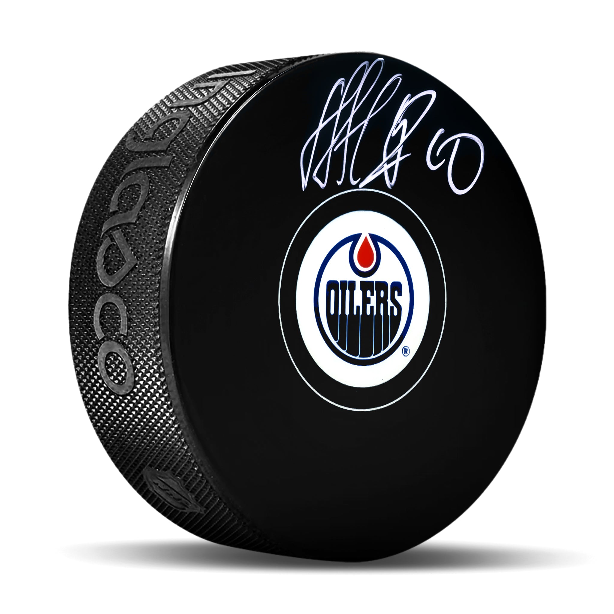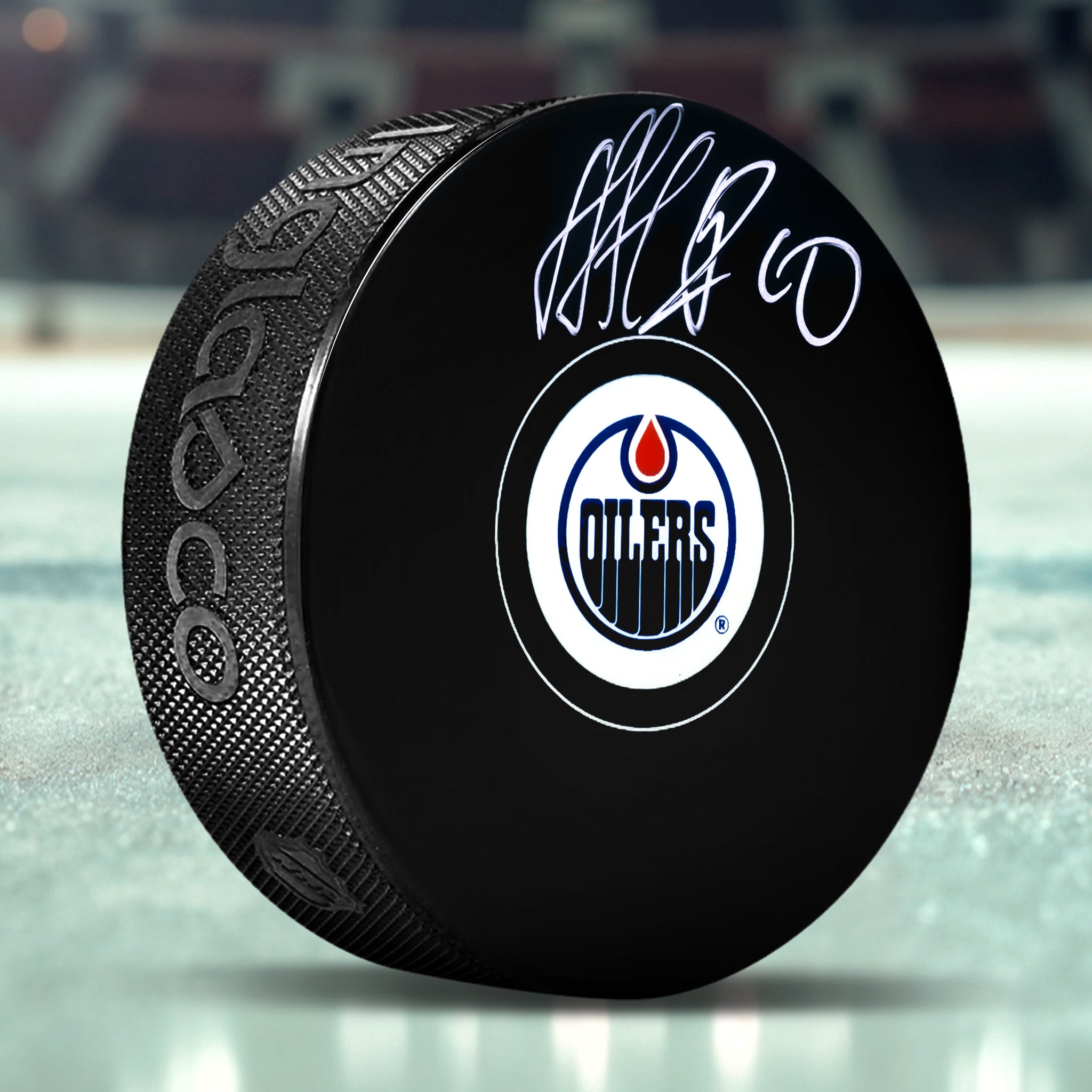 This Edmonton Oilers puck comes personally autographed by Nail Yakupov. This puck is an official license of the NHL and comes with a COA and Hologram from Frameworth to ensure authenticity. Signatures may vary. Made in Canada. Finished Size: 3 x 3"