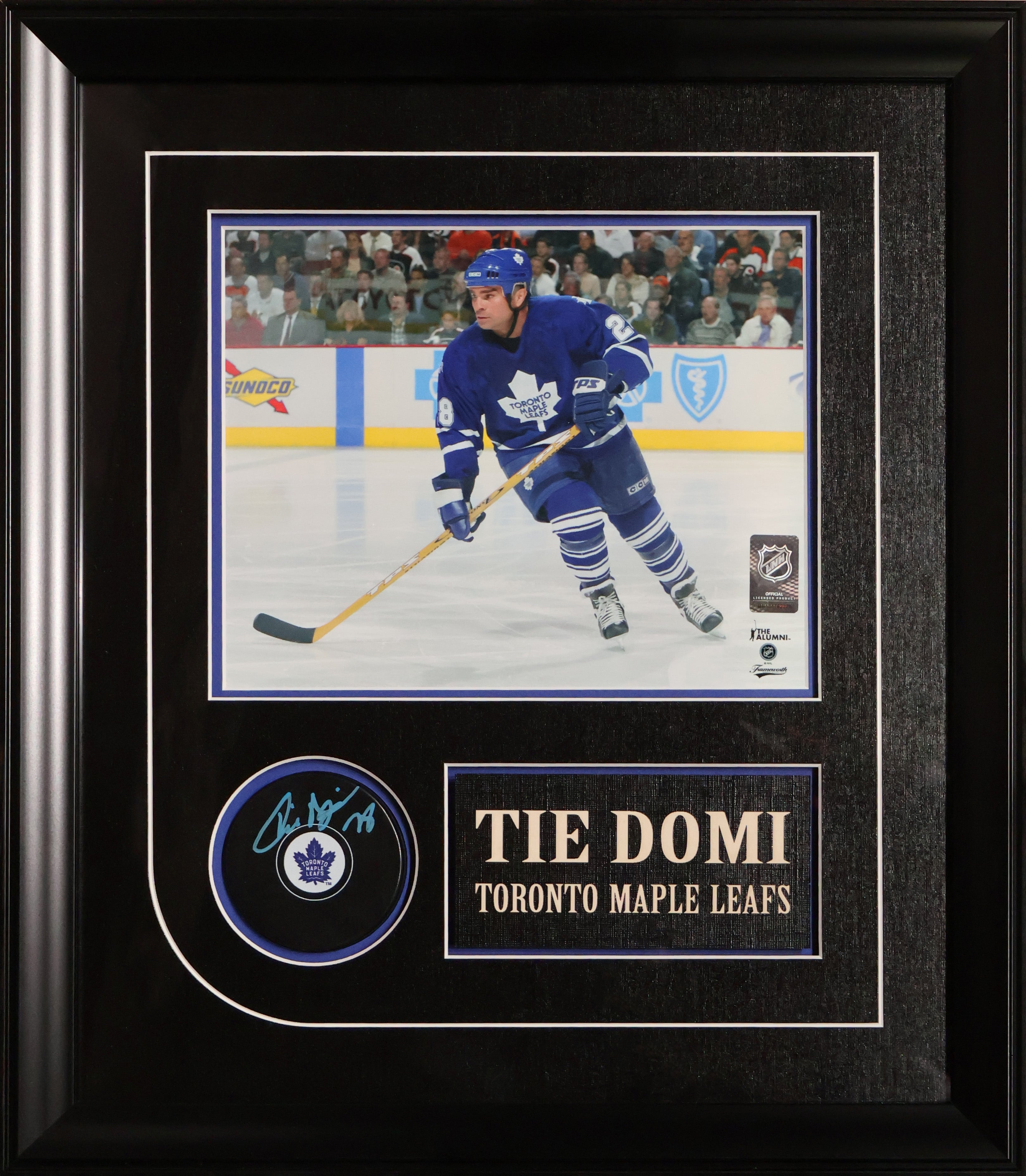 Tie Domi Signed Puck Framed 17x19.5" Toronto Maple Leafs