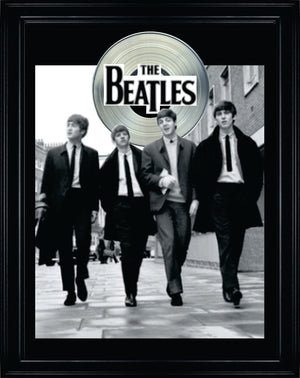 This poster of The Beatles, has been professionally matted and framed with a Replica Platinum LP. This item is the perfect piece for The Beatles ultimate fan and comes ready to hang.