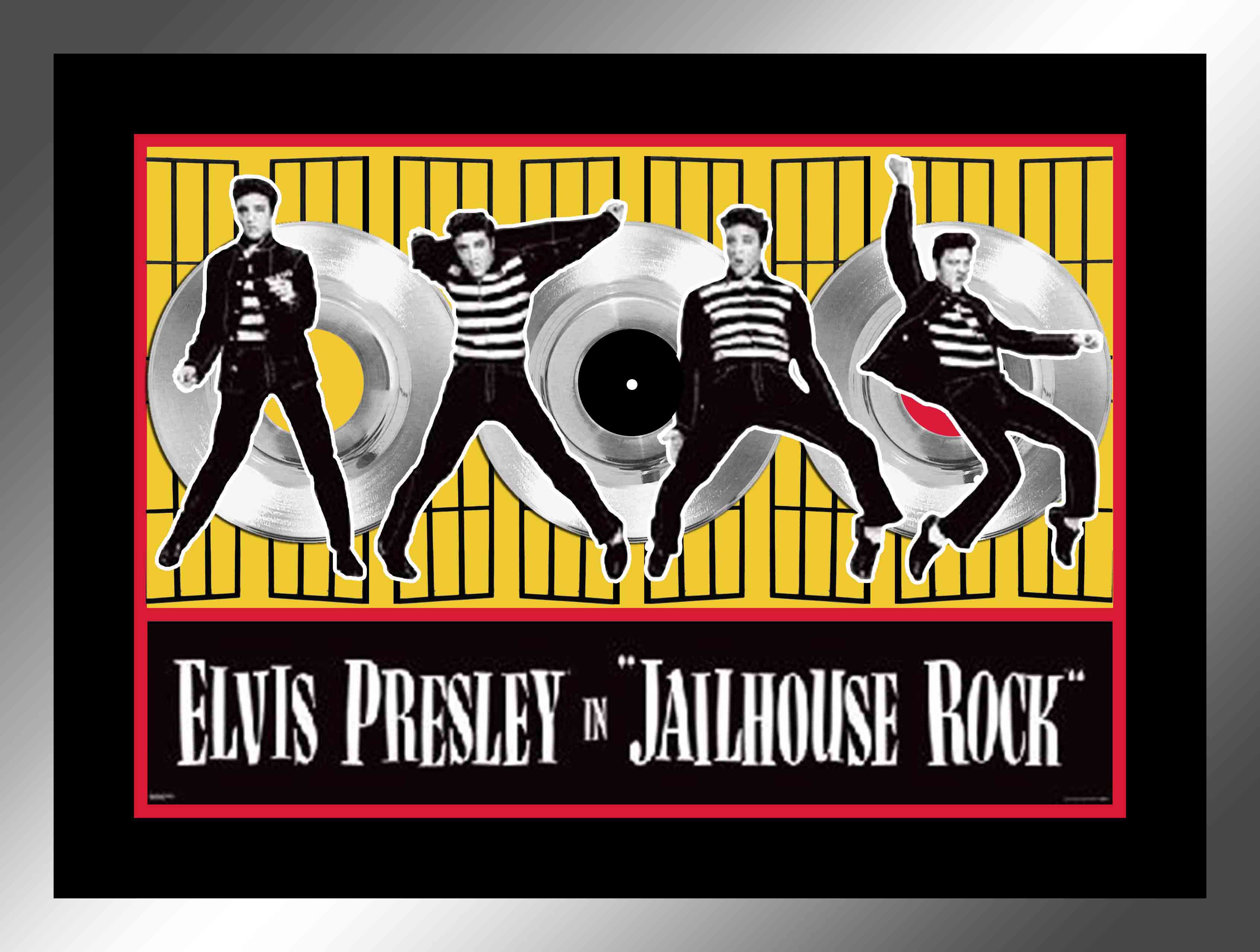 Elvis Presley Framed Jailhouse Rock Print with 3 metal albums