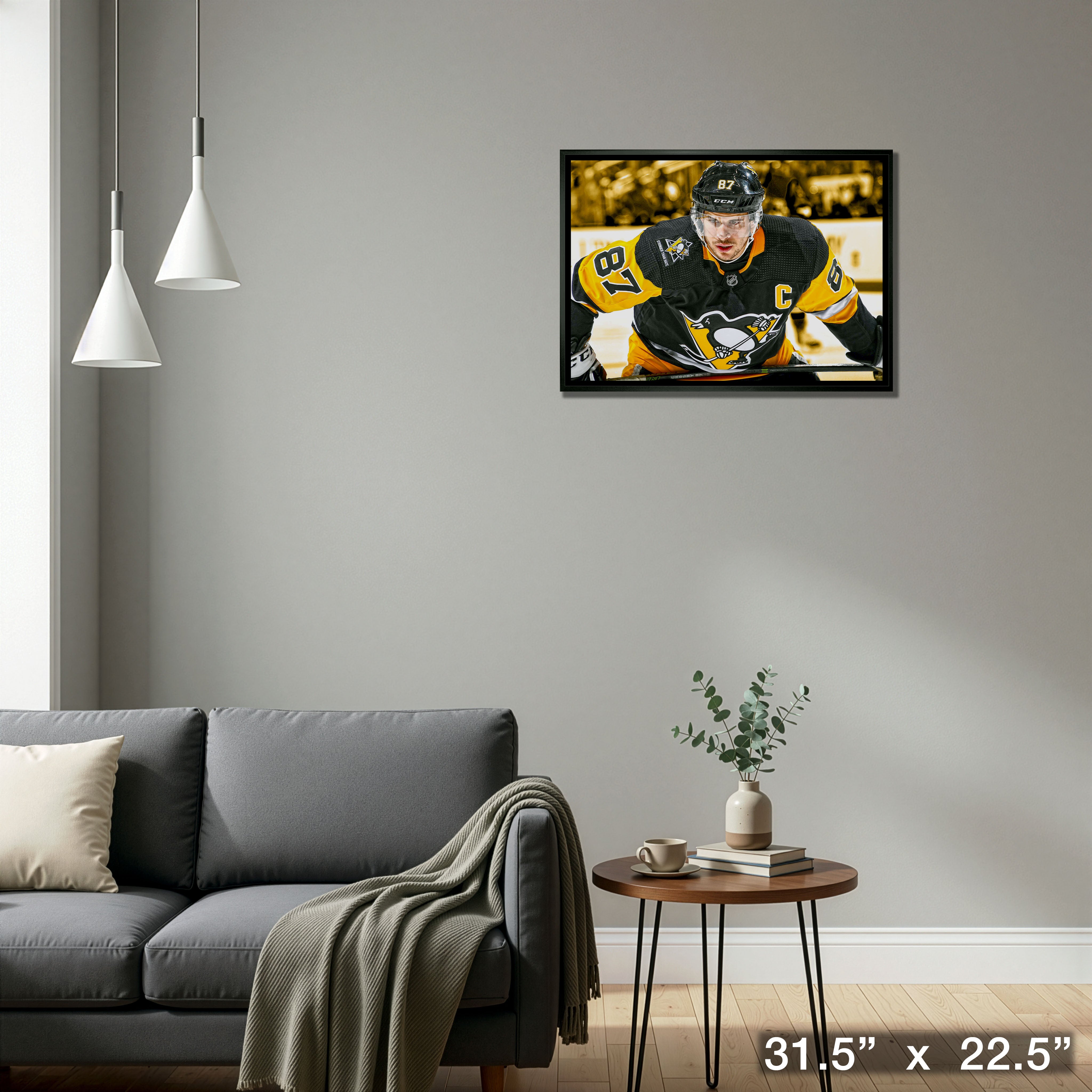 This image has been printed on high quality art canvas before being professionally stretched and framed. This product is officially licensed by the National Hockey League (NHL) and National Hockey League Players Association (NHLPA). Made in Canada. Finished Size: 31.5x22.5"