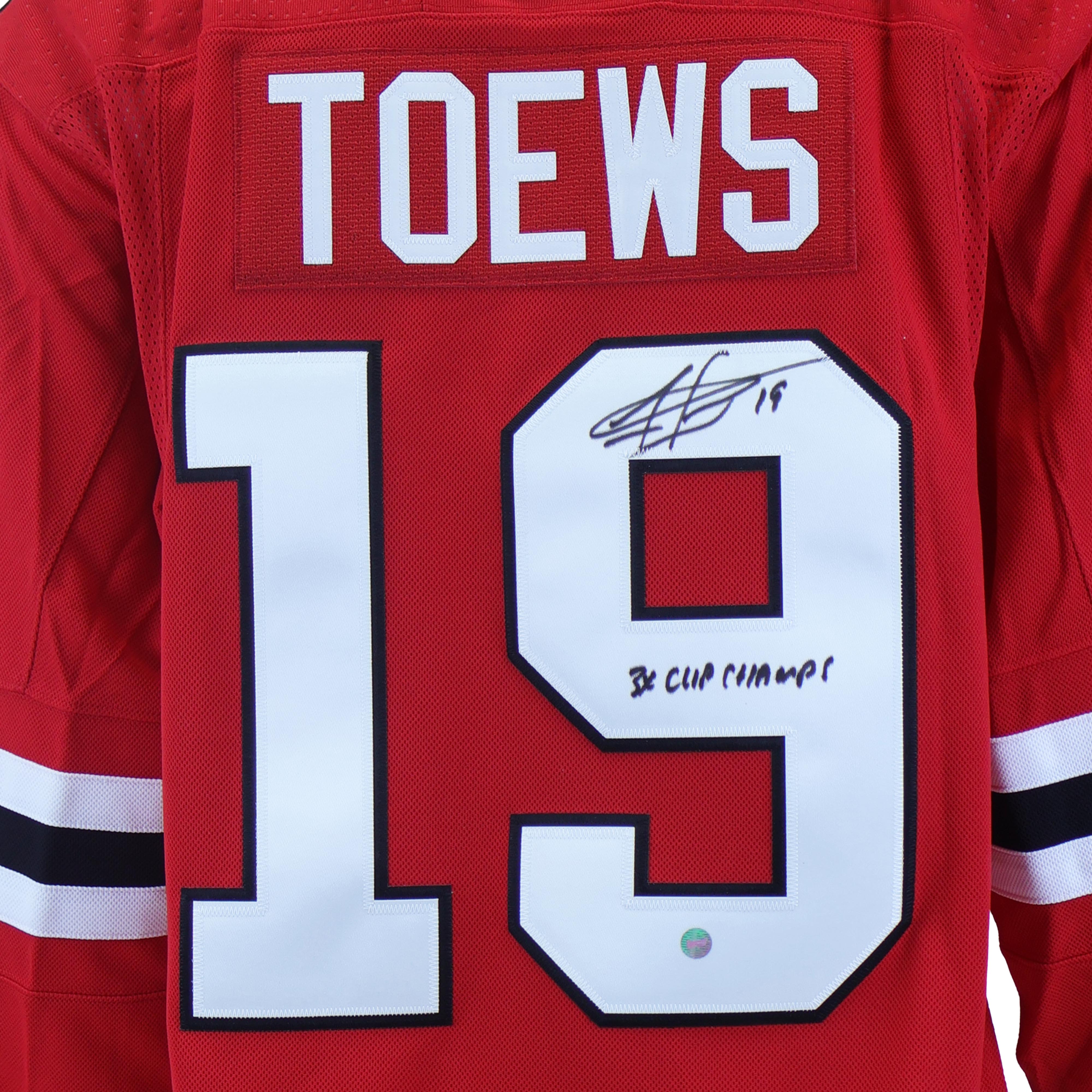 Jonathan Toews Signed Chicago Blackhawks Red Adidas Jersey with "3x Cup Champs" Inscribed