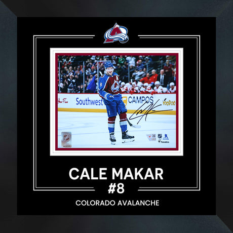 Cale Makar Colorado Avalanche Signed 8x10 Burgundy Celebration Photograph Framed