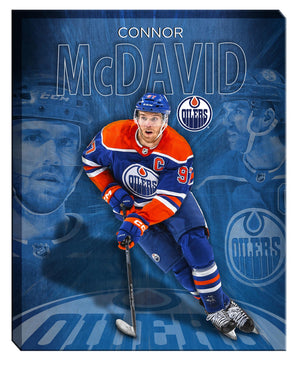 This image of Connor McDavid is printed on high quality art canvas. This canvas is officially licensed by the National Hockey League (NHL) and National Hockey League Players Association (NHLPA). Made in Canada.