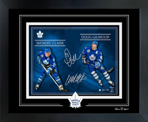 Doug Gilmour / Wendel Clark Dual-Signed 16x20 Skyline Framed PhotoGlass Maple Leafs L/E 99
