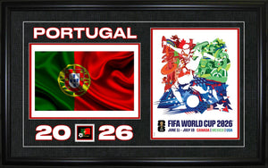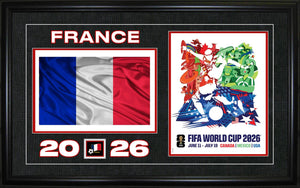 This 15x24" display features the England national flag alongside FIFA World Cup 2026 artwork in a Frameworth-designed collage layout, presented in a premium black frame with custom matting. A perfect tribute as the Three Lions pursue international glory.