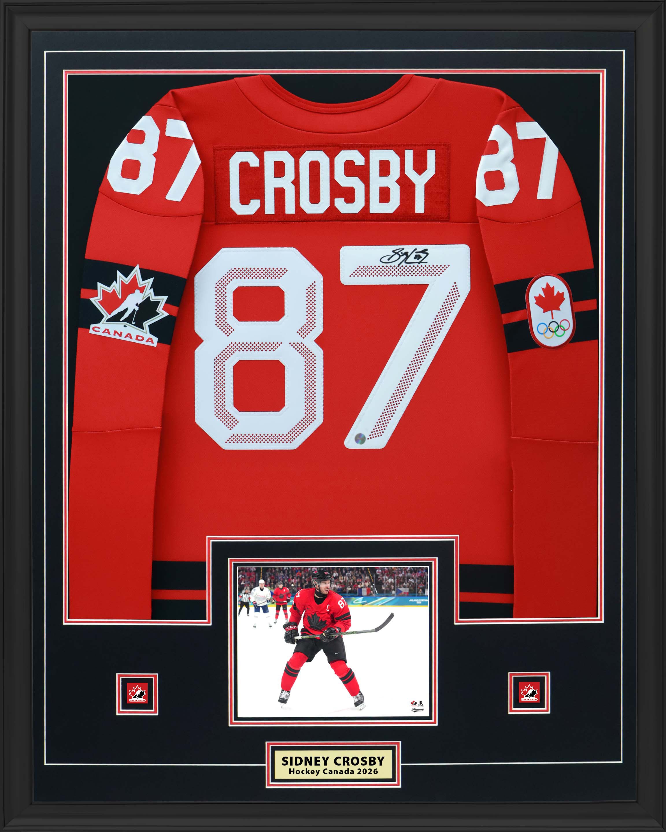 Sidney Crosby Signed Framed 34x42 Hockey Canada 2026 Red Bauer Replica Jersey