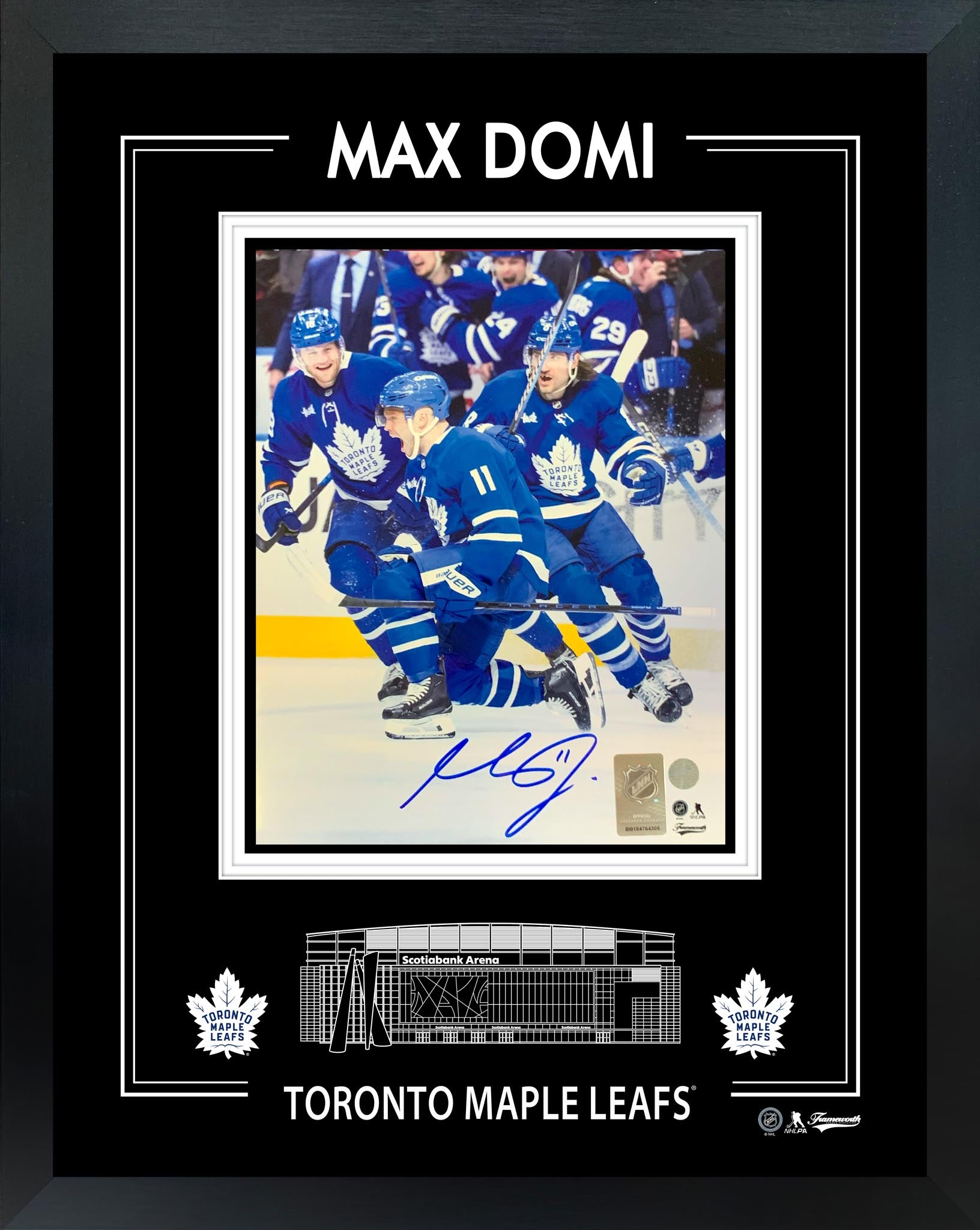 Max Domi Signed 8x10 Framed PhotoGlass Toronto Maple Leafs Sideview Celebration-V