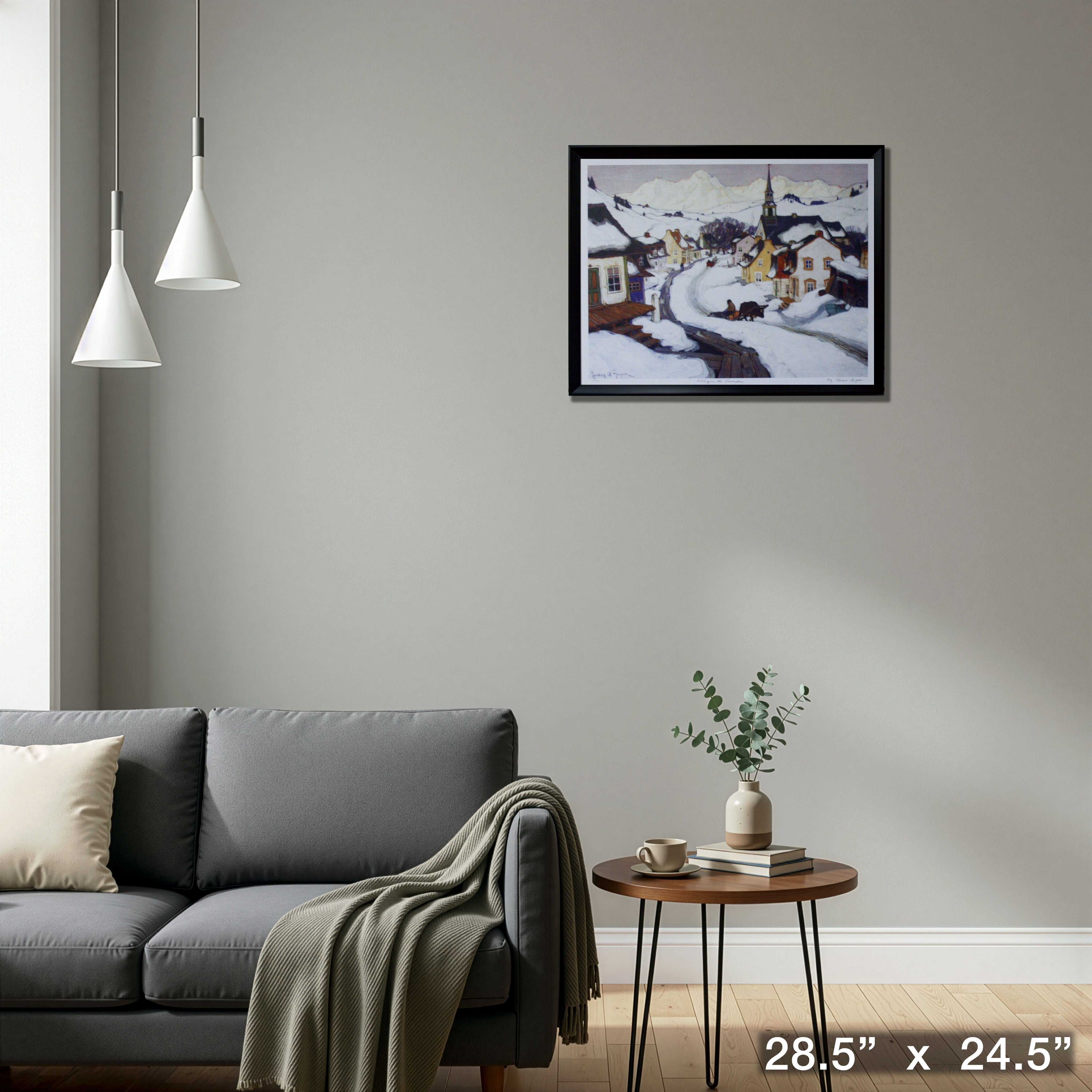 Inspired by Clarence Gagnon's 1920's "Winter Morning In Baie St Paul" print, this reproduction comes professionally matted and framed. The original artwork that this print is based on depicts a scenic winter landscape in the Laurentians, like many of the Canadian Group of Seven works. This item comes ready to hang and is the perfect decor item for any space. Finished Size: 28.5 x 24.5"
