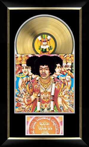 Jimi Hendrix Bold As Love Framed Poster framed poster featuring a gold vinyl replica in a 27.5x38.5 vertical layout. A must-have tribute to iconic music history. Made in Canada.