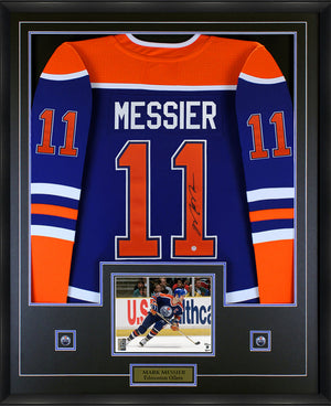 This Mark Messier Team Canada jersey with name and numbers professionally sewn on comes personally autographed by Mark Messier. This jersey comes with a certificate of authenticity and hologram from Frameworth to ensure authenticity. Signatures may vary. Finished Size: 25 x 35"
