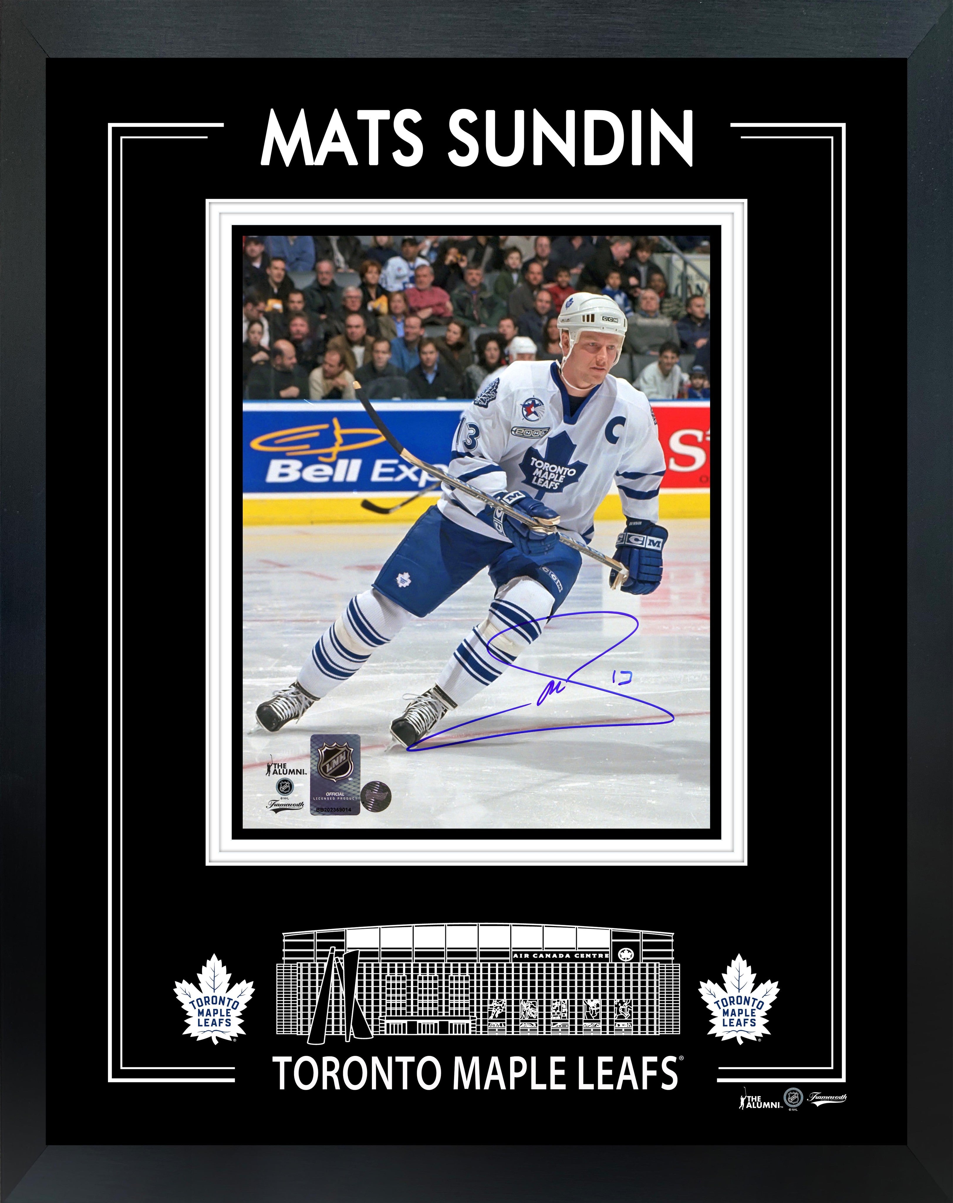 This photo of Mats Sundin comes personally autographed by Mats Sundin before being professionally framed. This photo is officially licensed by the National Hockey League (NHL) and comes with a certificate of authenticity and hologram from Frameworth to ensure authenticity. Signatures may vary. Made in Canada. Finished Size: 16x20"