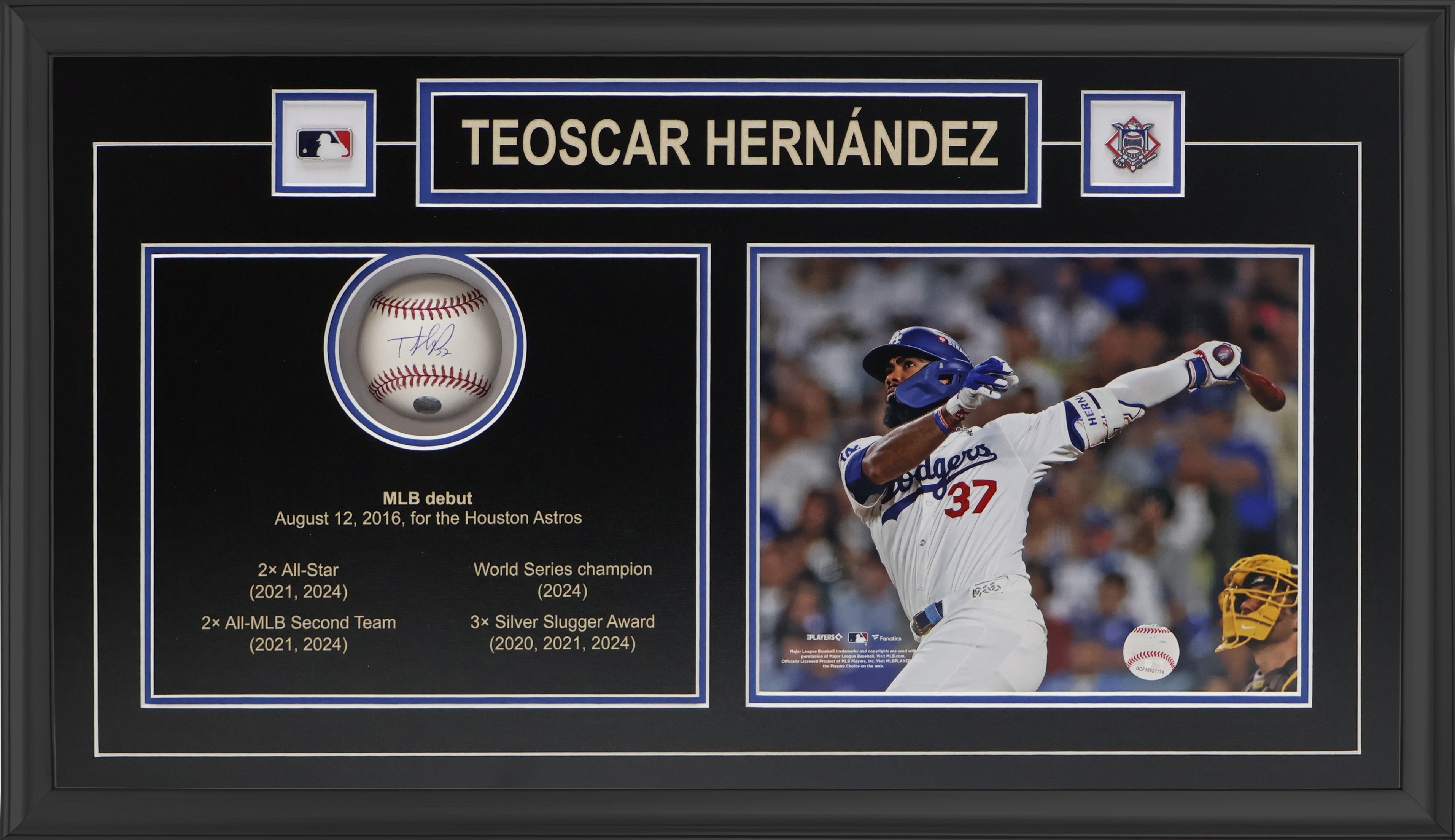 Teoscar Hernandez Signed Official Baseball Deluxe Frame Los Angeles Dodgers