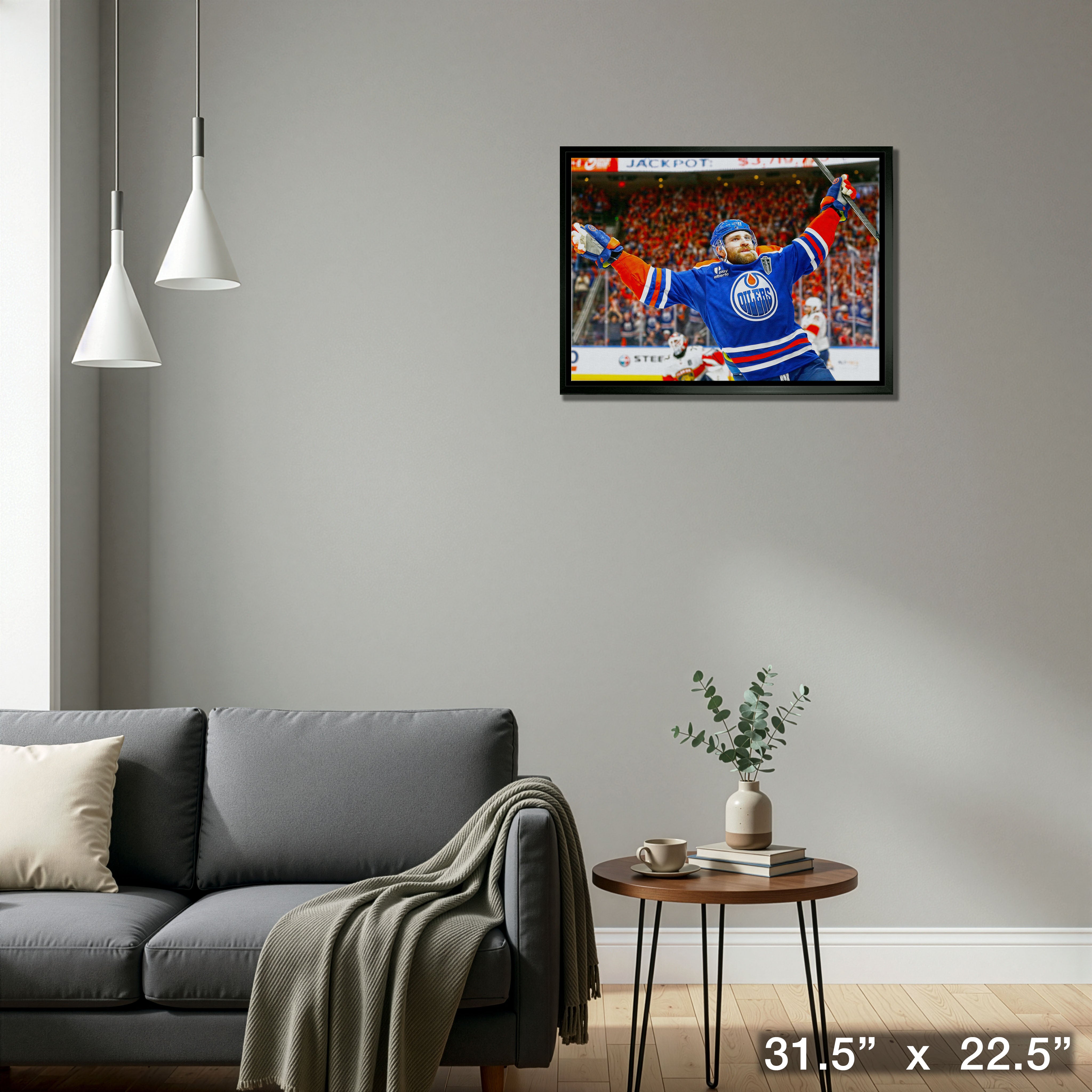 Leon Draisaitl 20x29 Framed Canvas Oilers 2025 SCF OT Celebration -H
