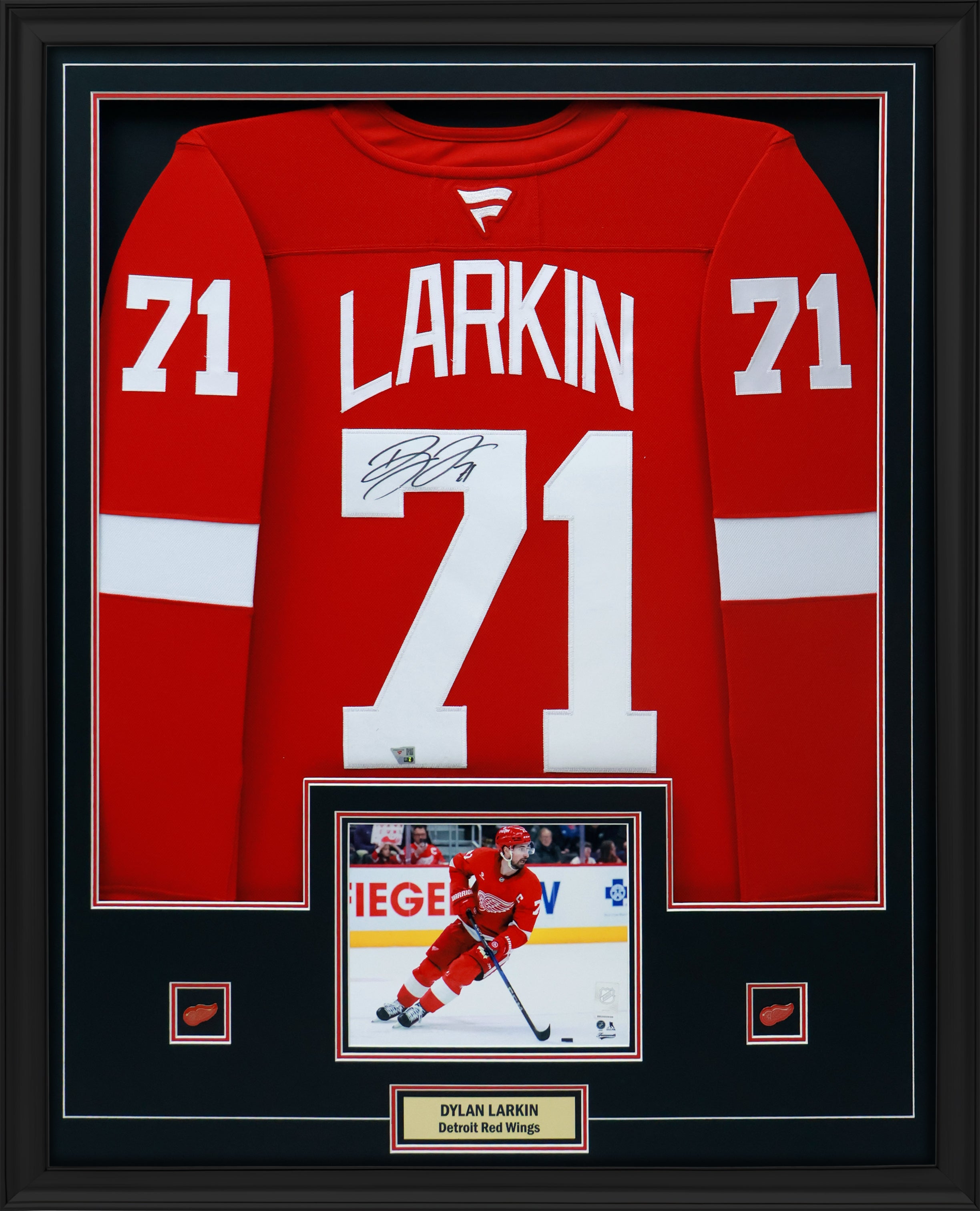 Dylan Larkin Signed Framed 34x42 Detroit Red Wings Home Fanatics Premium Jersey