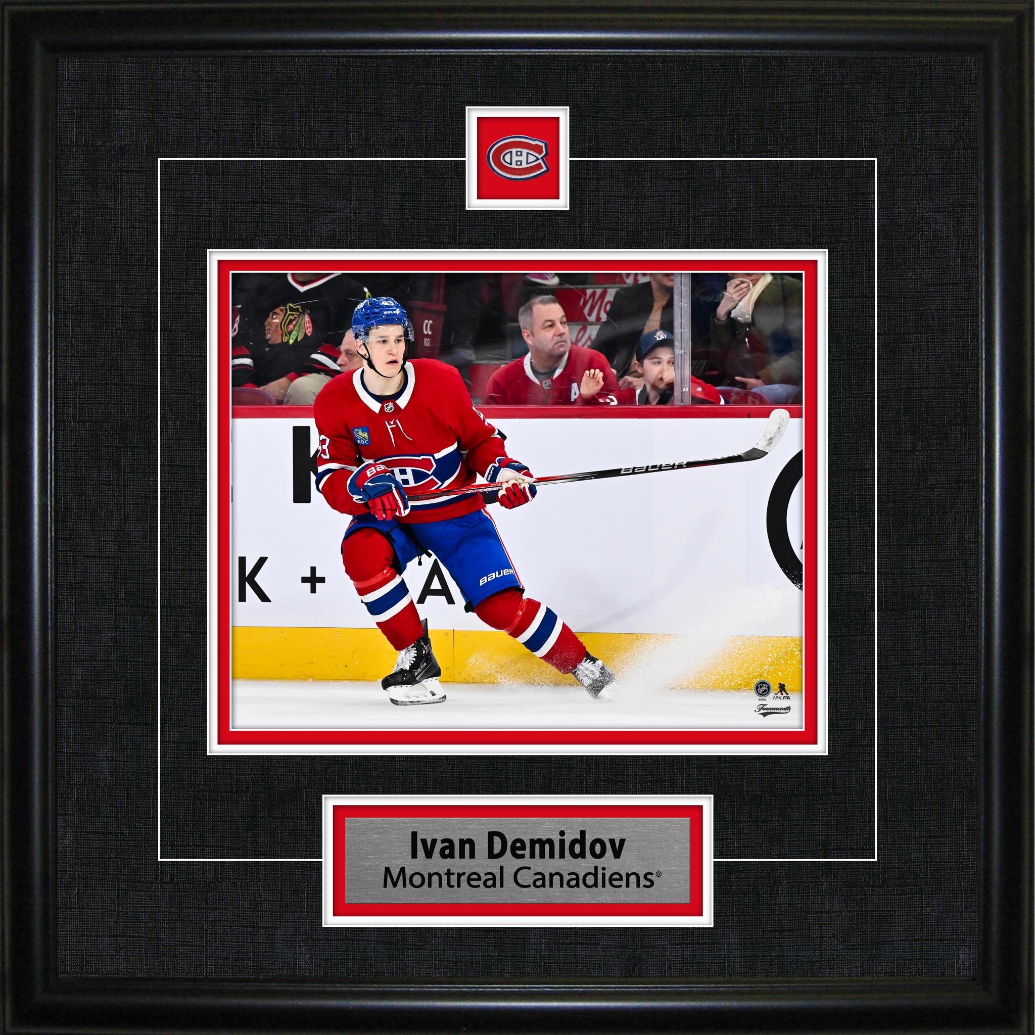 This image of Ivan Demidov is printed on high quality photo paper and then professionally framed. This print is officially licensed by the National Hockey League (NHL) and National Hockey League Players Association (NHLPA). Made in Canada. Finished Size: 18x18"