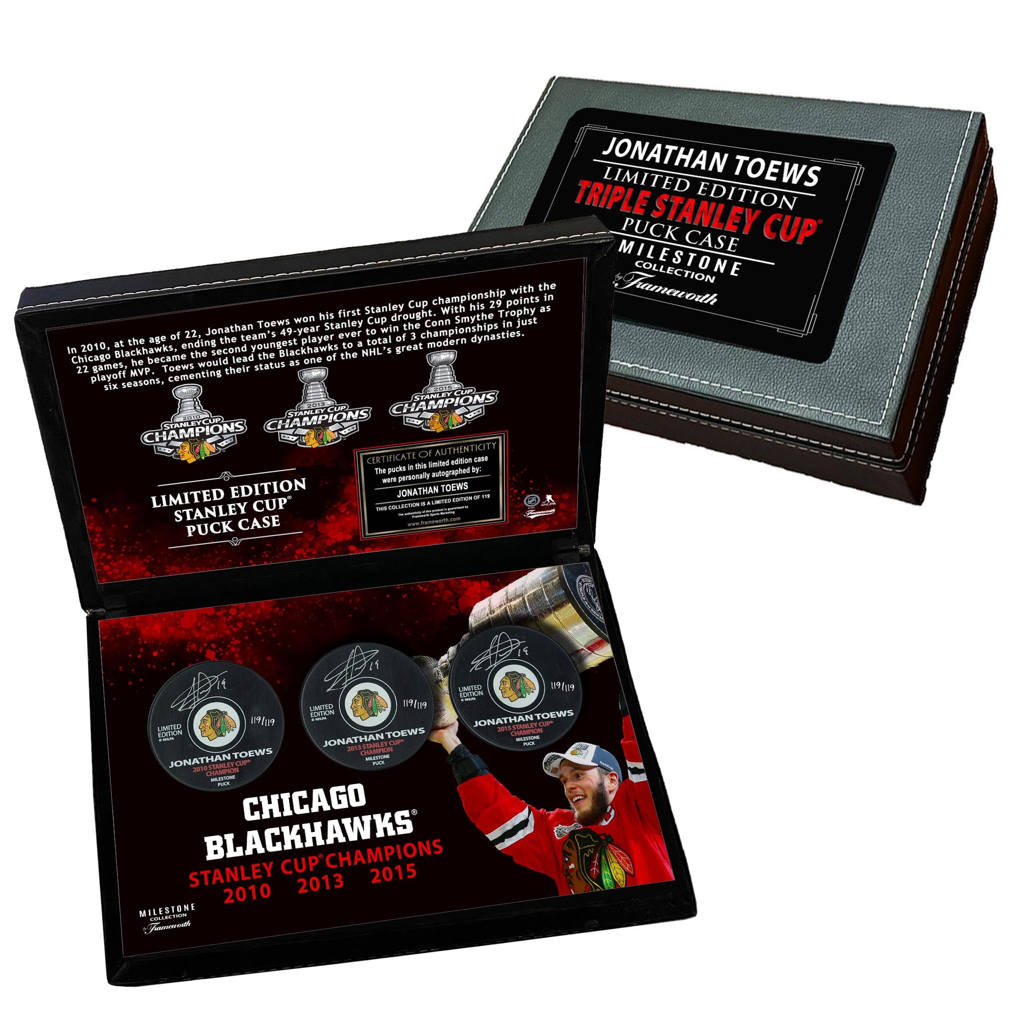 Jonathan Toews Signed 3x Stanley Cup Champions Chicago Blackhawks in a Deluxe Case (Limited Edition of 119)