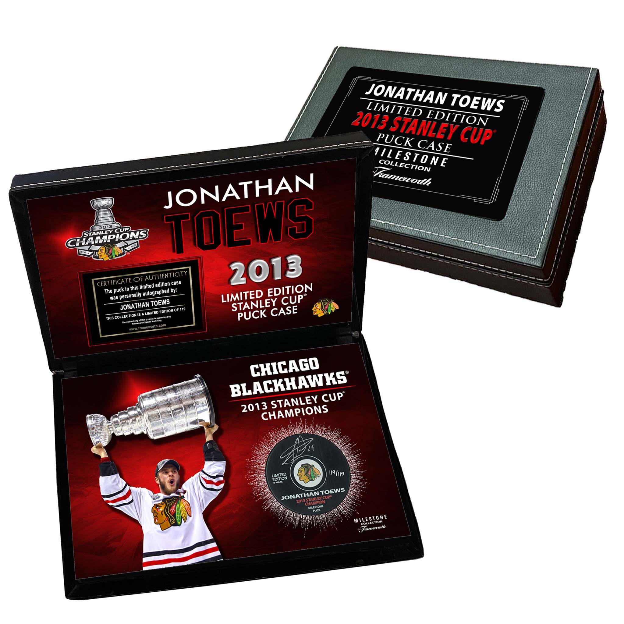 Jonathan Toews Signed Puck 2013 Stanley Cup Champions Chicago Blackhawks in a Deluxe Case (Limited Edition of 119)