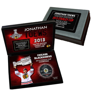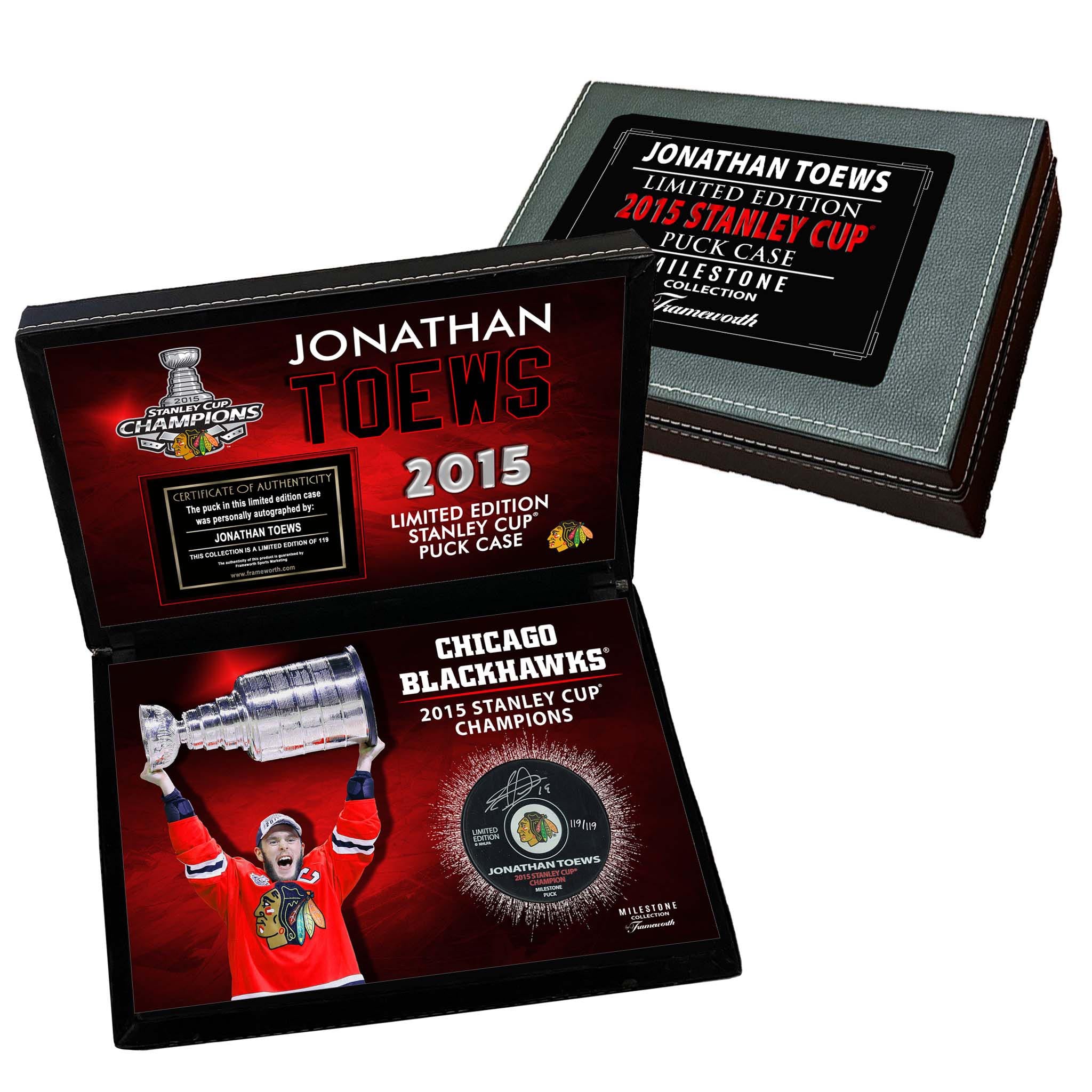 Jonathan Toews Signed Puck 2015 Stanley Cup Champions Chicago Blackhawks in a Deluxe Case (Limited Edition of 119)