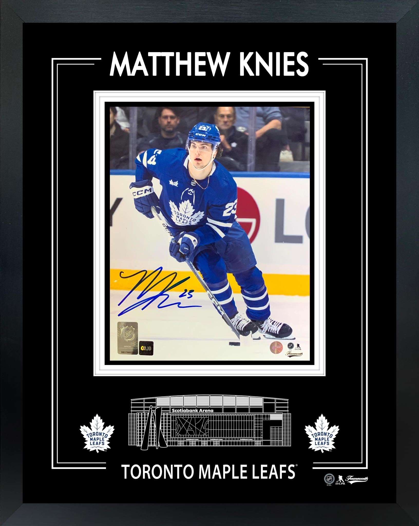 Matthew Knies Signed 8x10 Framed PhotoGlass Toronto Maple Leafs Blue Action-V