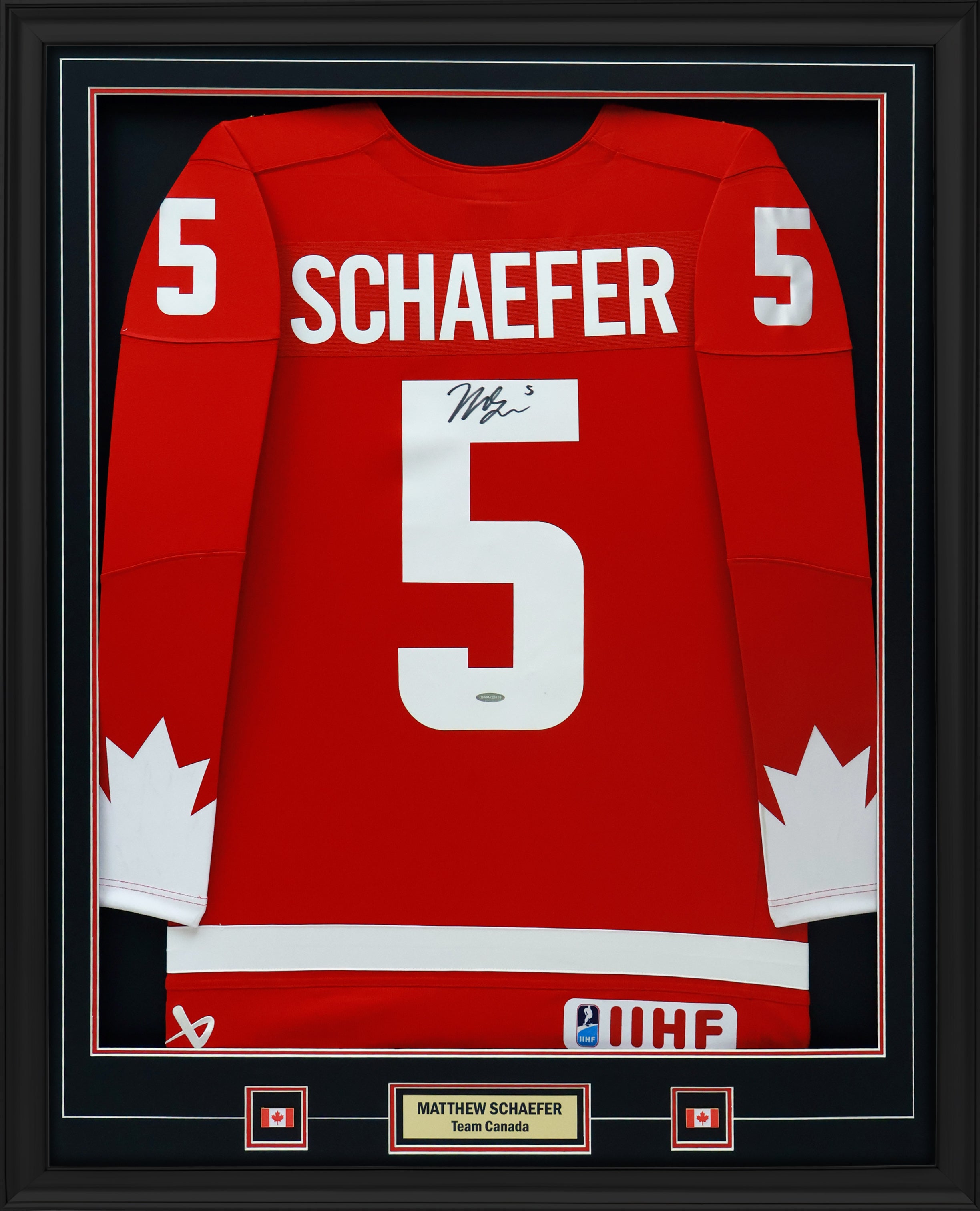 Matthew Schaefer Signed Framed 34x42 2025 World Juniors Team Canada Red Jersey