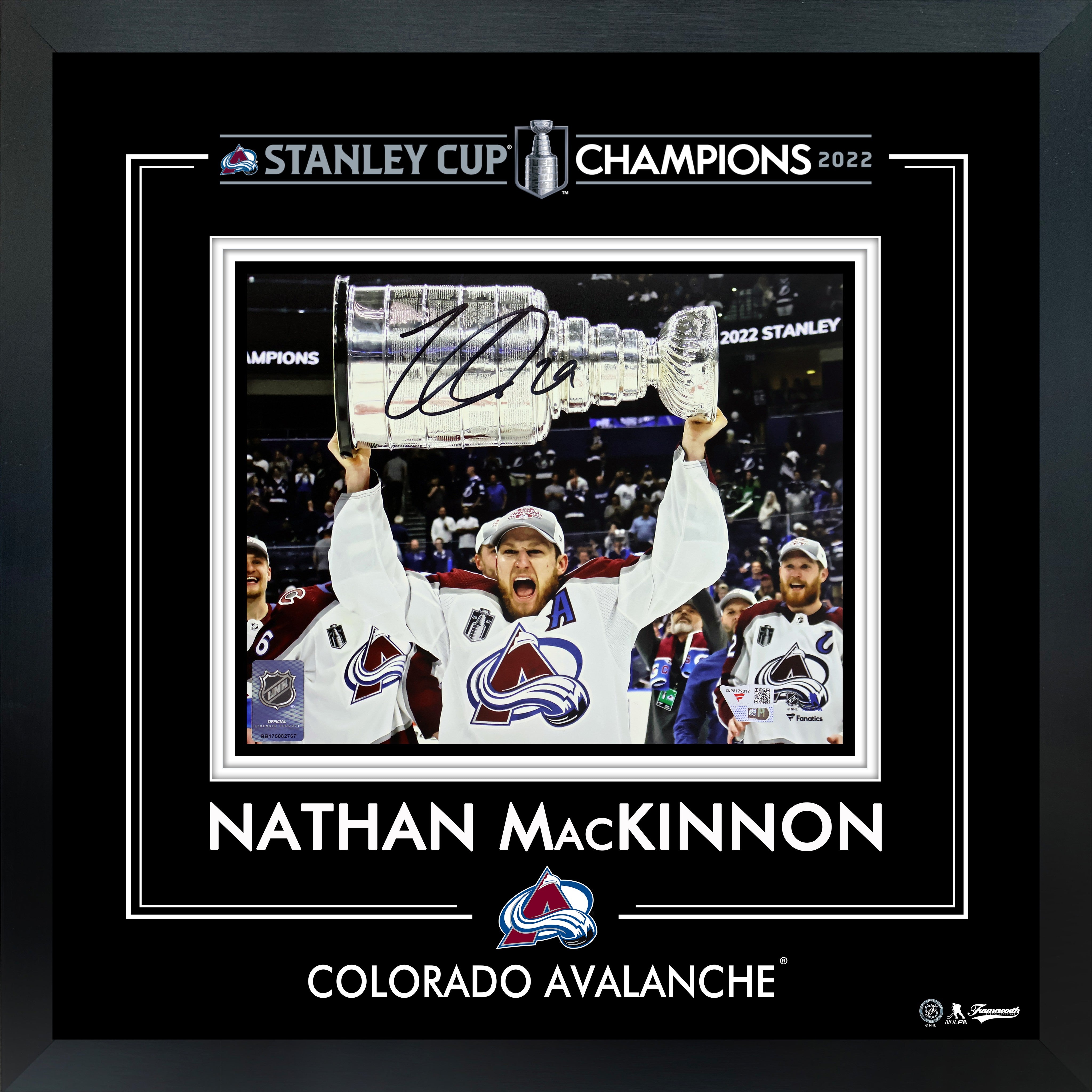 Nathan MacKinnon Colorado Avalanche Signed 2022 Stanley Cup Champions 8 x 10 Framed PhotoGlass Raising Cup Photograph is backordered and will ship as soon as it is back in stock.