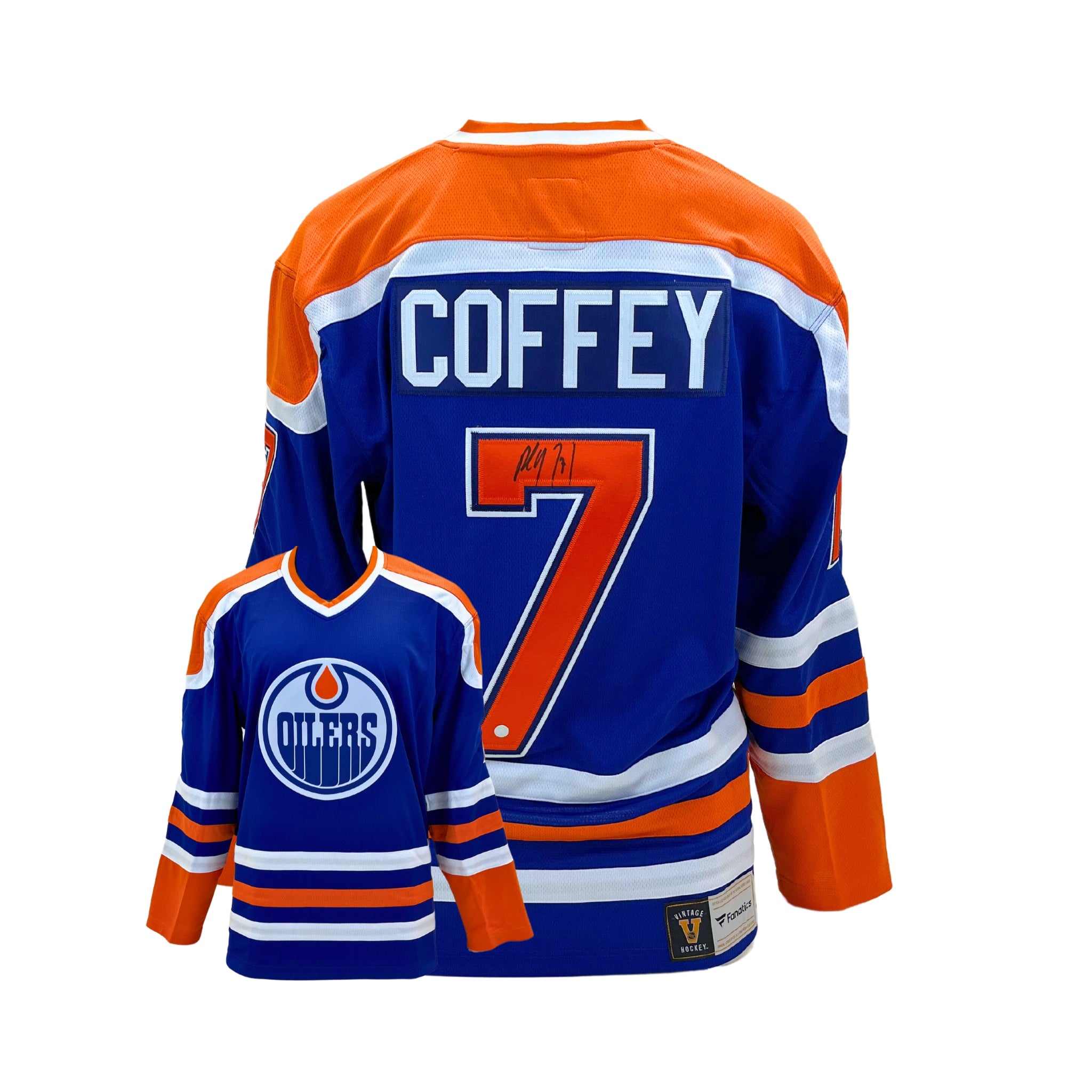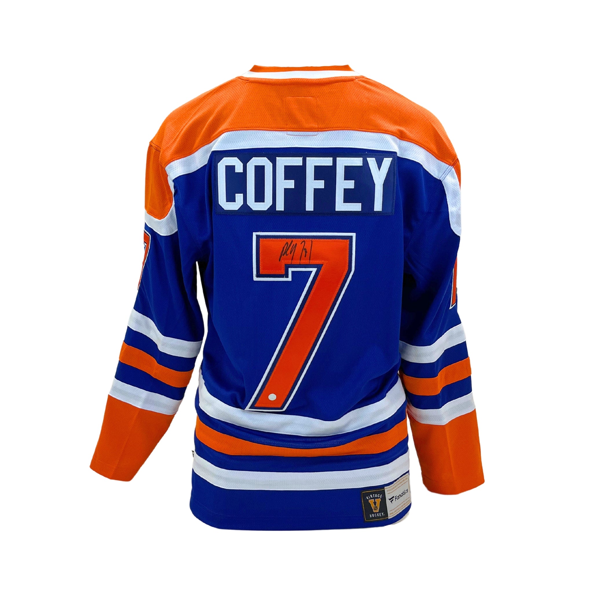 Paul Coffey Signed Edmonton Oilers Replica Fanatics Vintage Blue Jersey
