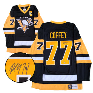 This Paul Coffey Edmonton Oilers jersey with name and numbers professionally sewn on comes personally autographed by Paul Coffey. This jersey is officially licensed by the National Hockey League (NHL) and comes with a certificate of authenticity and hologram from Frameworth to ensure authenticity. Signatures may vary. Made in Canada