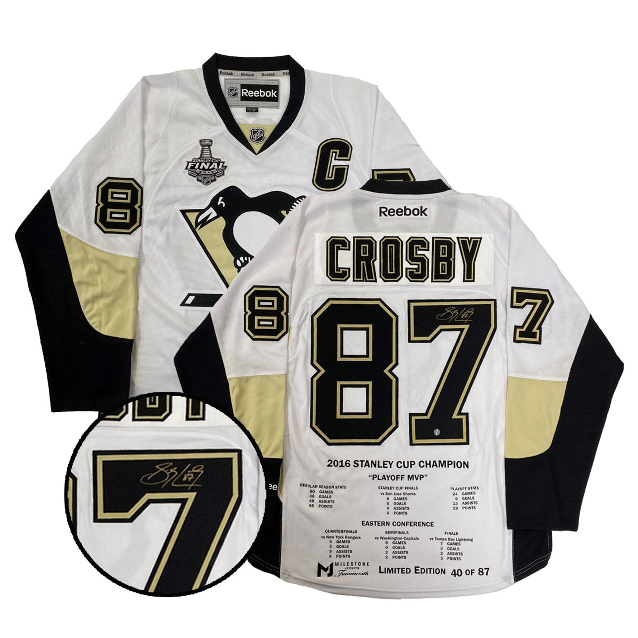 Sidney Crosby Signed Jersey Milestone Penguins White 2016 Stanley Cup Replica Reebok (Limited Edition of 87)