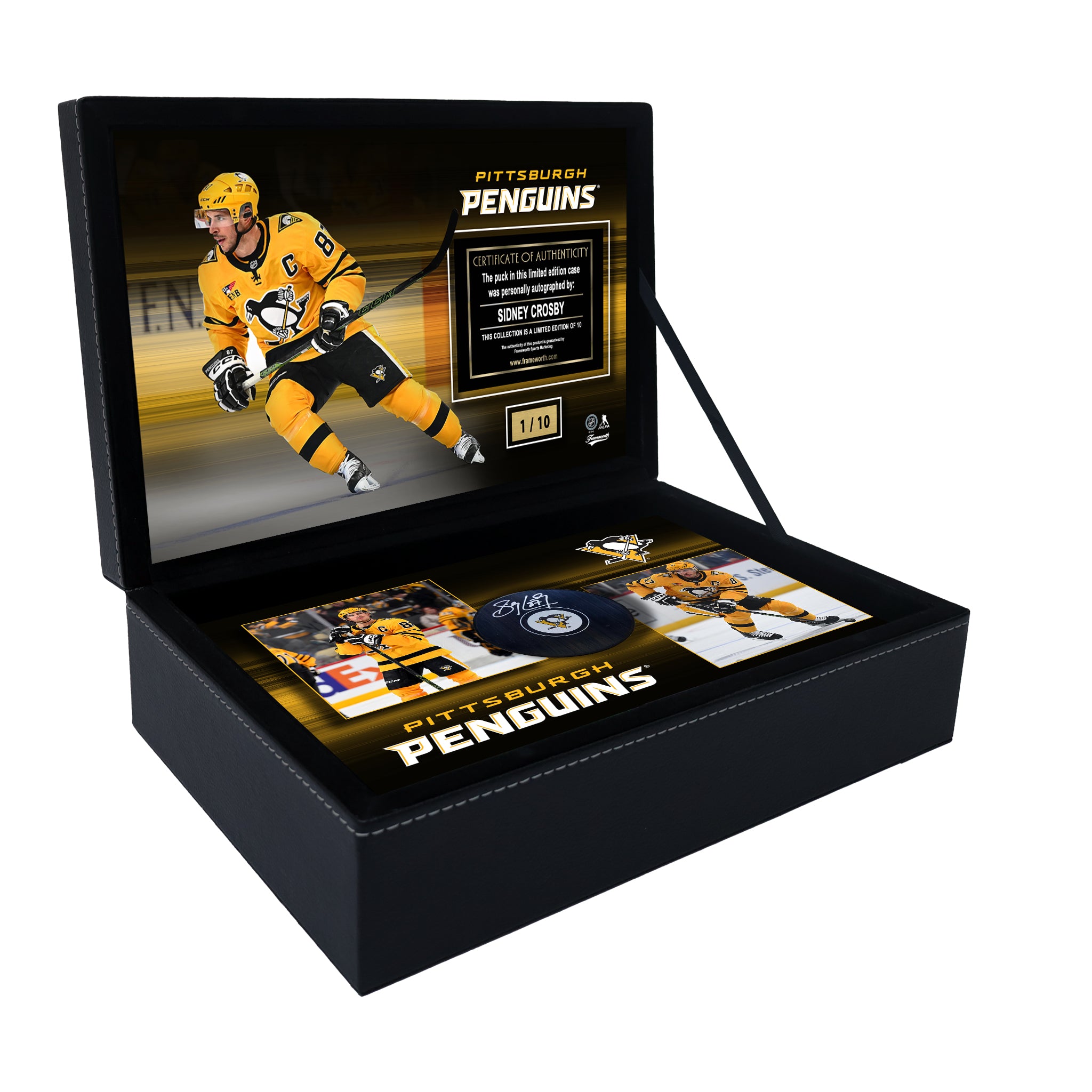This Pittsburgh Penguins puck comes personally autographed by Sidney Crosby himself. This puck is officially licensed by the National Hockey League (NHL) and National Hockey League Players Association (NHLPA) and comes with a certificate of authenticity and hologram from Frameworth to ensure authenticity. Signatures may vary.