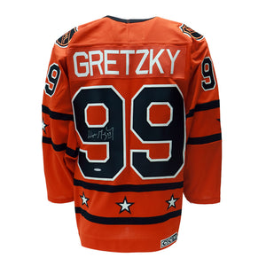 This Wayne Gretzky NHL All-Star jersey with name and numbers professionally sewn on comes personally autographed by Wayne Gretzky. This jersey is officially licensed by the National Hockey League (NHL) and comes with a certificate of authenticity and hologram from Upper Deck to ensure authenticity. Signatures may vary. Jersey size may vary. Made in Canada.