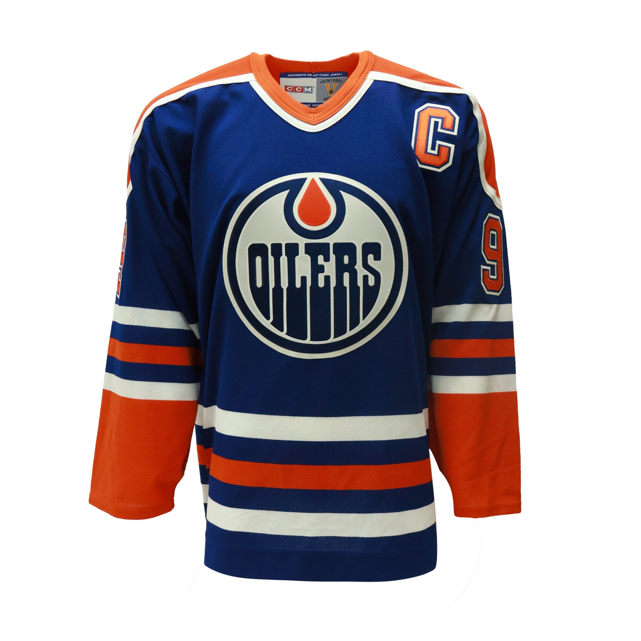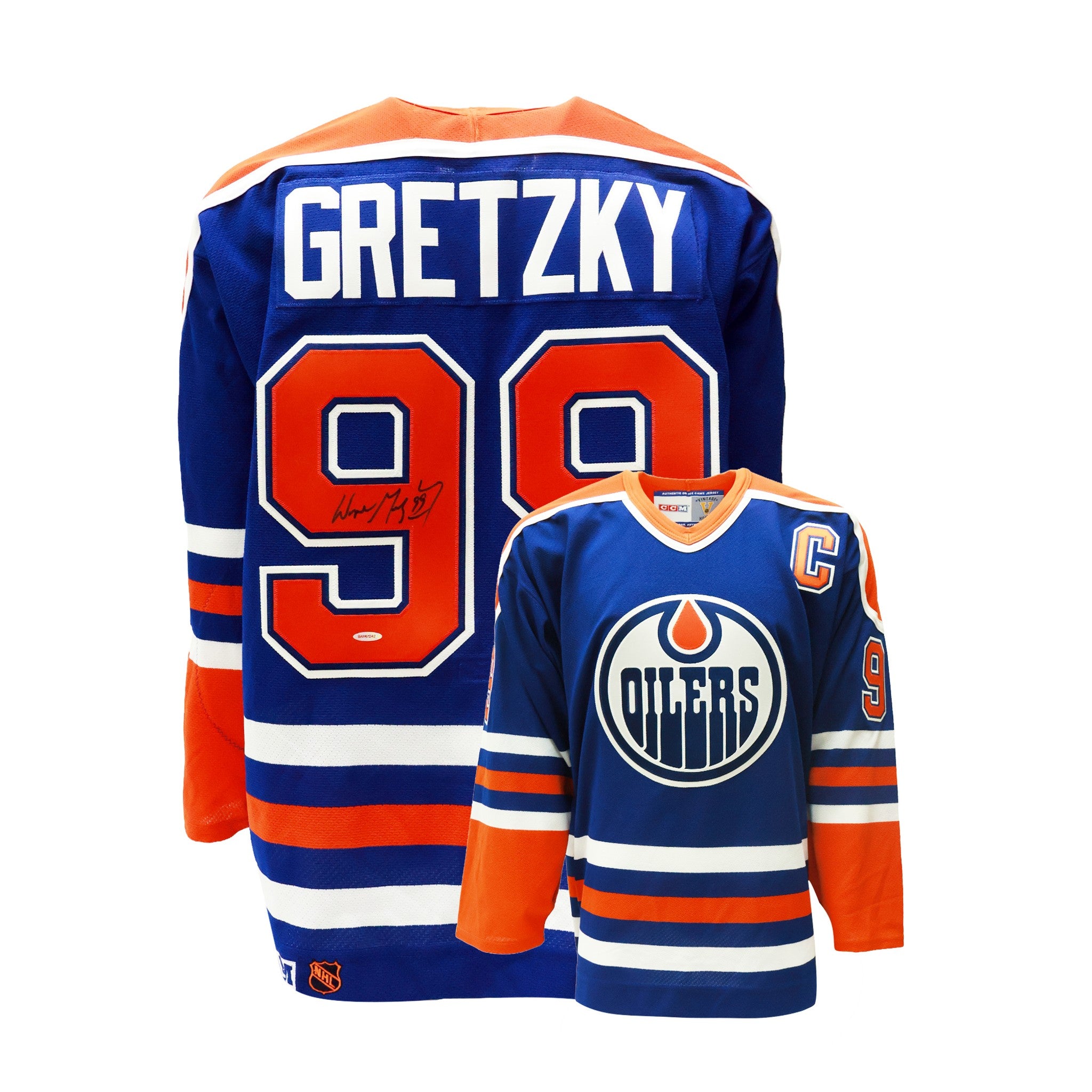 This Wayne Gretzky Edmonton Oilers jersey with name and numbers professionally sewn on comes personally autographed by Wayne Gretzky. This jersey is officially licensed by the National Hockey League (NHL) and comes with a certificate of authenticity and hologram from Upper Deck to ensure authenticity. Signatures may vary. Jersey size may vary. Made in Canada.
