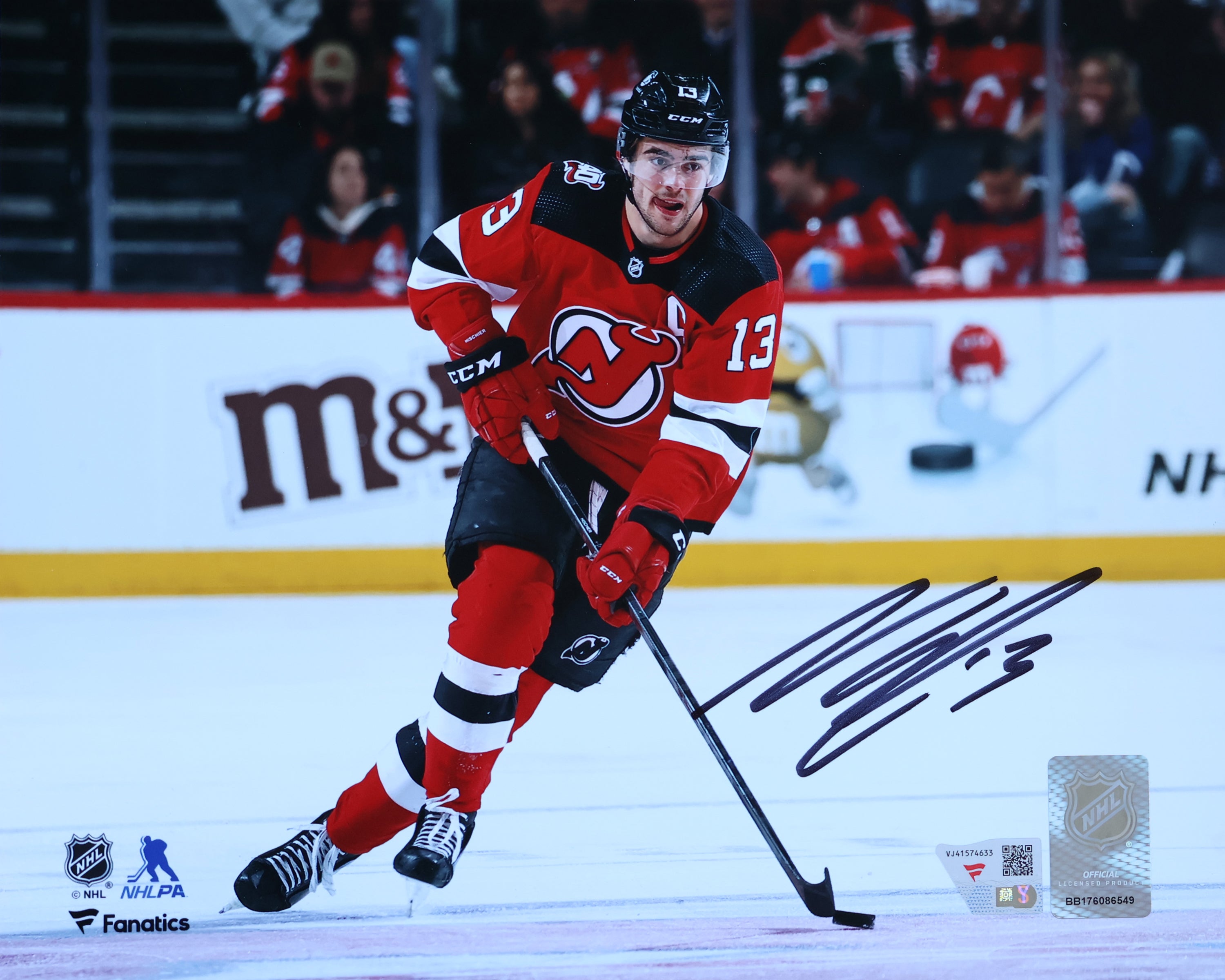 This photo of Nico Hischier comes personally autographed by Nico Hischier himself. This photo is officially licensed by the National Hockey League (NHL) and National Hockey League Players Association (NHLPA) and comes with a certificate of authenticity and hologram from Fanatics to ensure authenticity. Signatures may vary. Made in Canada
