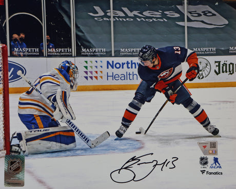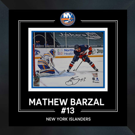 Mathew Barzal New York Islanders Signed 8x10 Goal Between Legs Photograph Framed