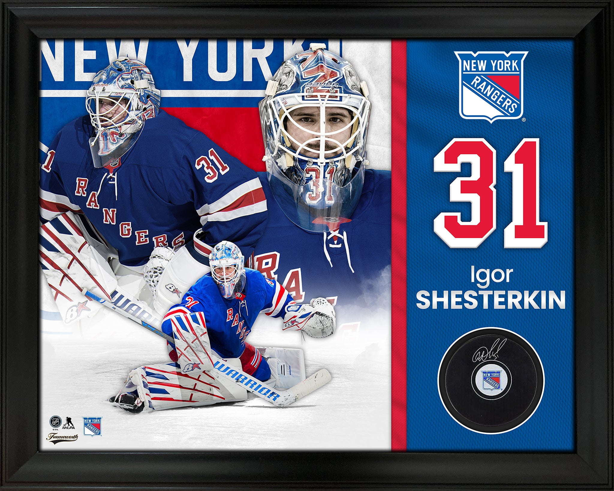 Igor Shesterkin New York Rangers Signed Hockey Puck Framed is backordered and will ship as soon as it is back in stock.