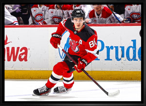 This image of Corey Perry is printed on high quality art canvas and then professionally stretched and framed. This canvas is officially licensed by the National Hockey League (NHL) and National Hockey League Players Association (NHLPA). Made in Canada.. Finished Size: 22.5 x 31.5"