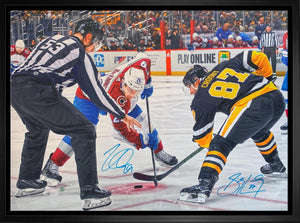 Sidney Crosby and Nathan MacKinnon Dual-Signed Framed 20x29 Penguins vs Avalanche Face-Off Canvas