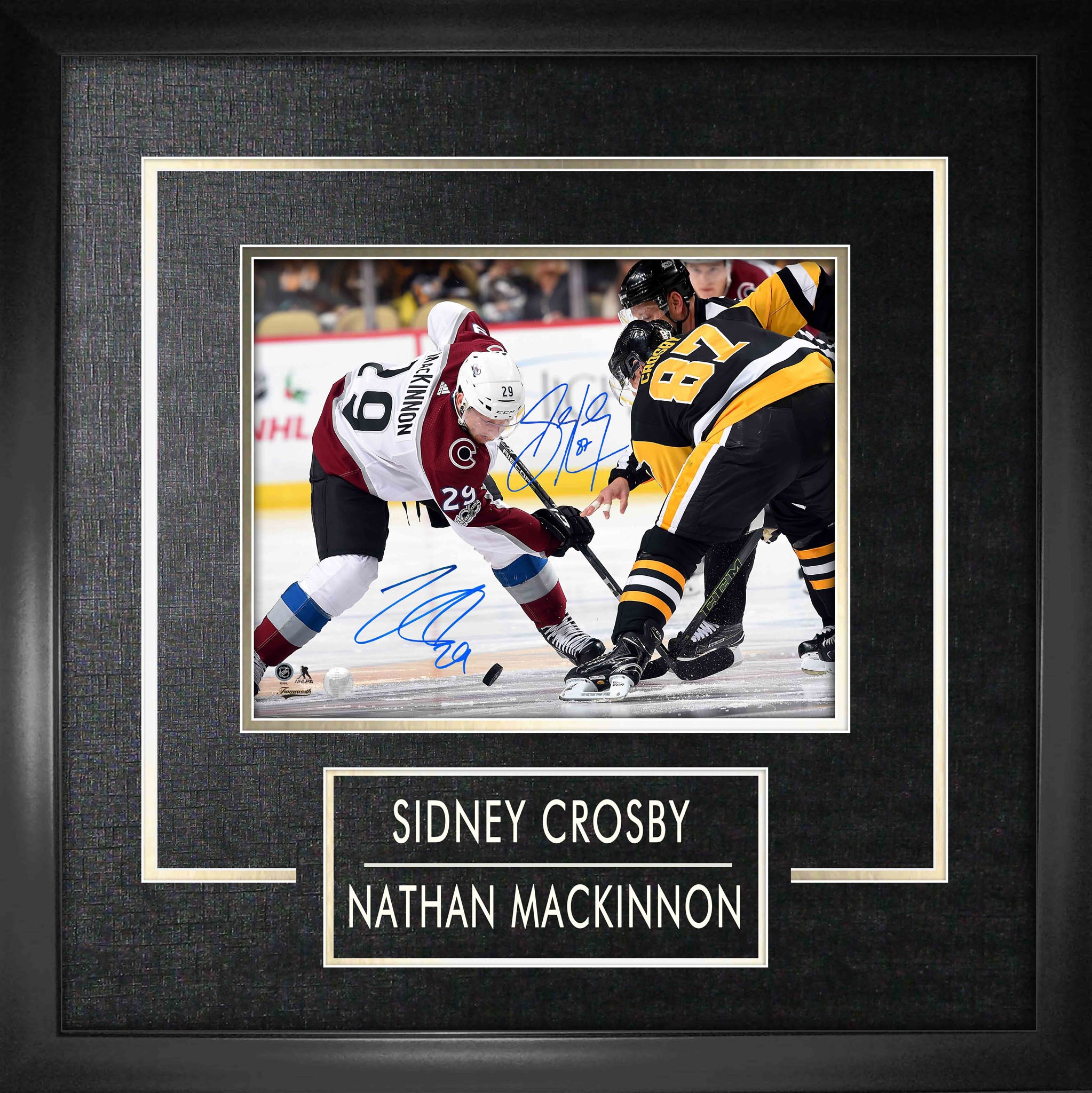 Product: Sidney Crosby and Nathan MacKinnon Dual Signed Framed 8x10 Faceoff Photo Pittsburgh Penguins vs Colorado Avalanche