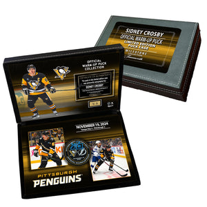 Secure a piece of hockey drama with this authentic warm-up puck from November 16th, 2024 - the night Sidney Crosby scored his 599th career goal, moving within one of the exclusive 600-goal club. In a heart-stopping contest that saw the Penguins nearly surrender a 3-0 lead before winning 4-3 in a shootout, this game epitomized the emotional intensity of Crosby's milestone chase. Limited to just 5 pieces worldwide, this puck captures the pre-game moments before one of the most dramatic victories of the season.
