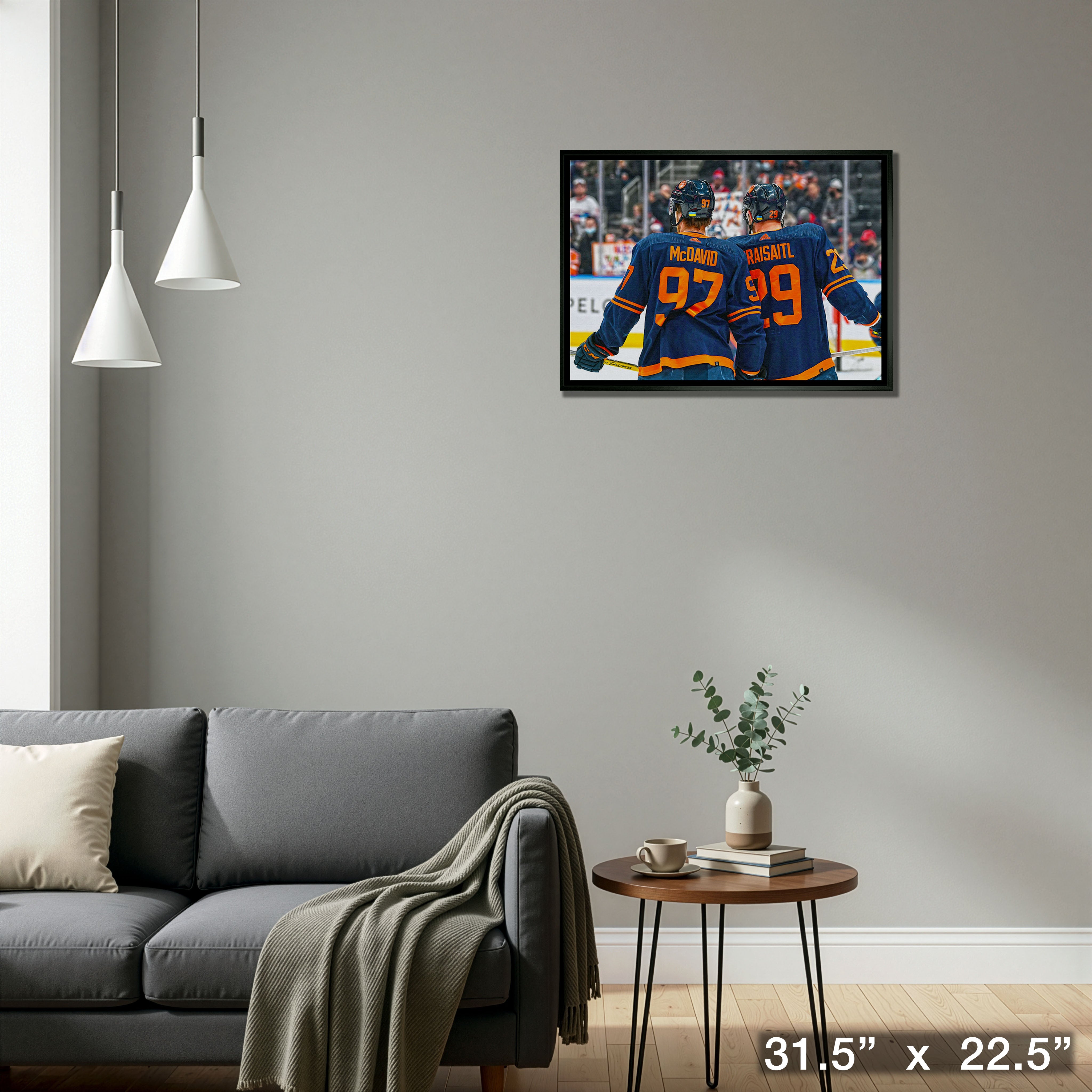 This image is printed on high quality art canvas and then professionally stretched and framed. This canvas is officially licensed by the National Hockey League (NHL) and National Hockey League Players Association (NHLPA). Made in Canada. Finished Size: 31.5 x 22.5"