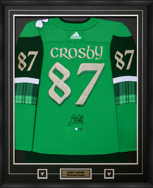 This Sidney Crosby NHL All-Star jersey with name and numbers professionally sewn on comes personally autographed by Sidney Crosby before being professionally framed. This jersey framed is officially licensed by the National Hockey League (NHL) and National Hockey League Players Association (NHLPA) and comes with a certificate of authenticity and hologram from Frameworth to ensure authenticity. Signatures may vary. Finished Size: 34 x 42"